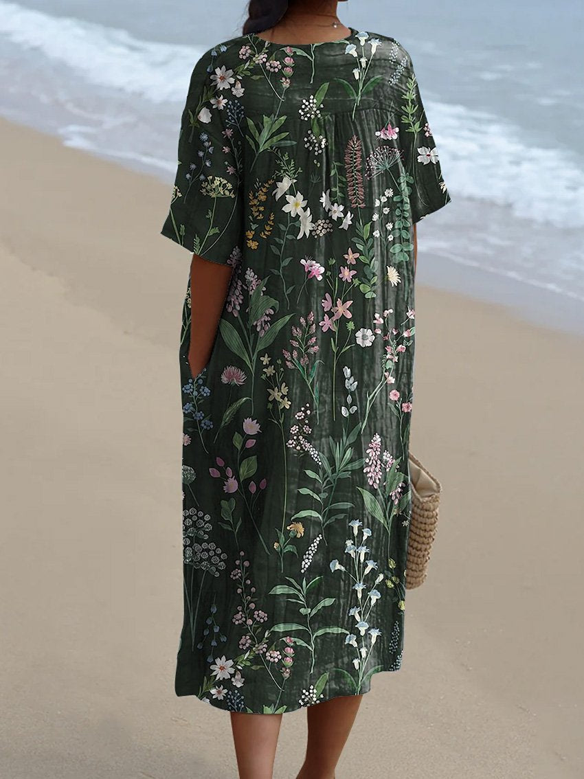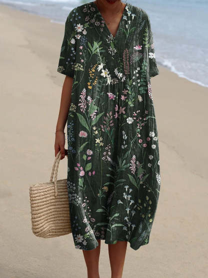 Spring Field In The Night Pattern Printed Women's Flowy Dress