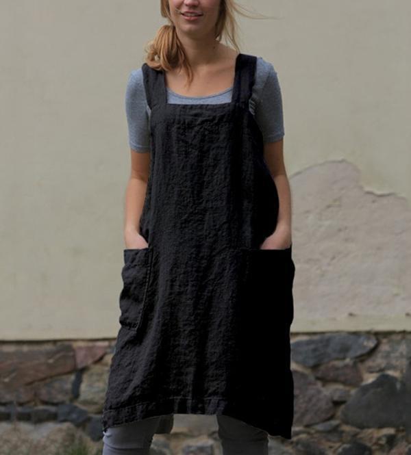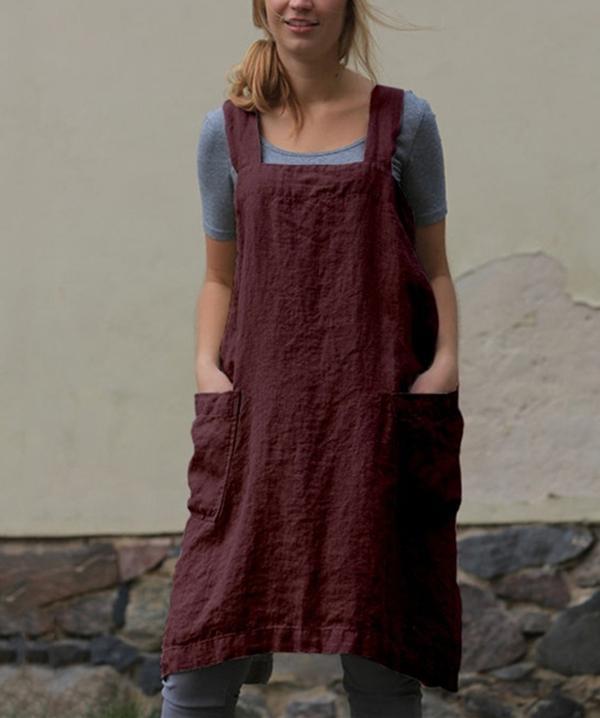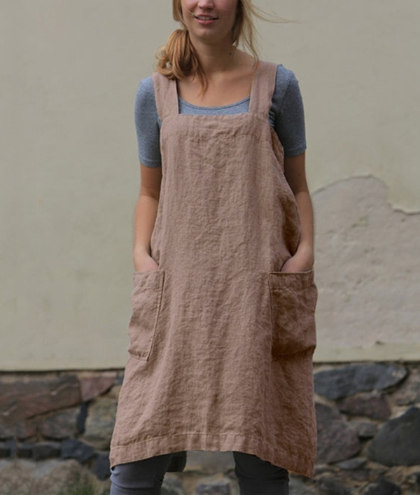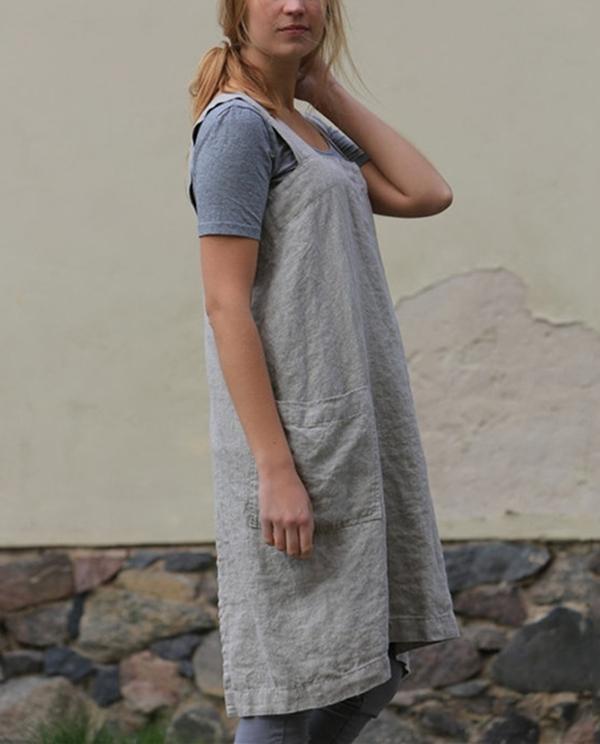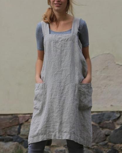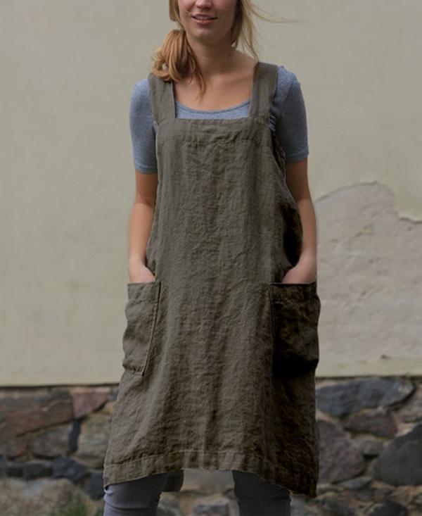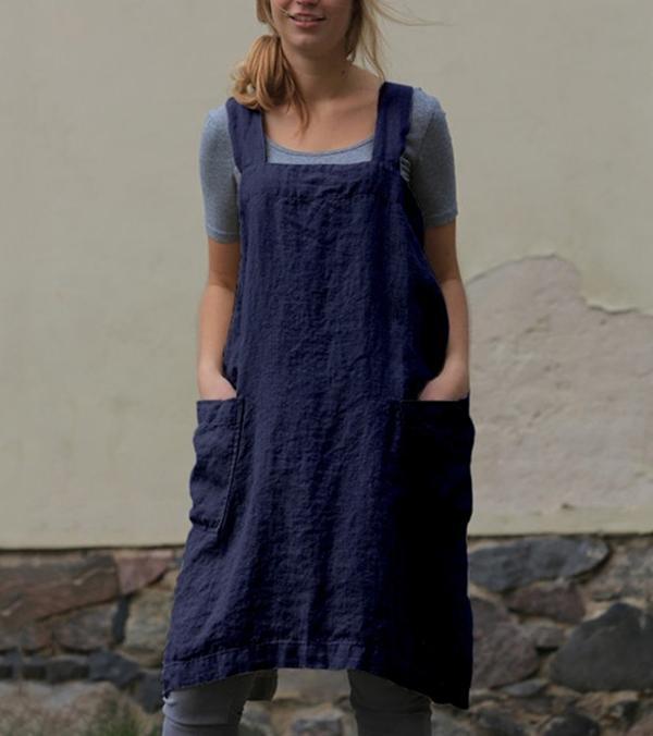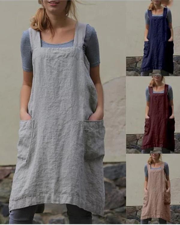Square Neck Women Shift Daily Cotton-Blend Pockets Dress