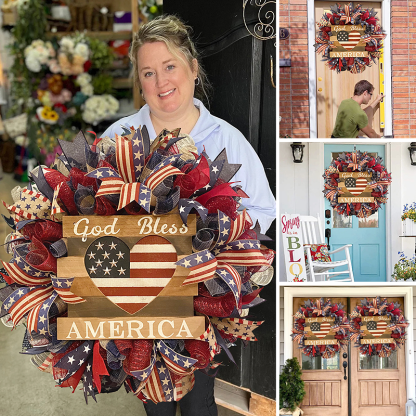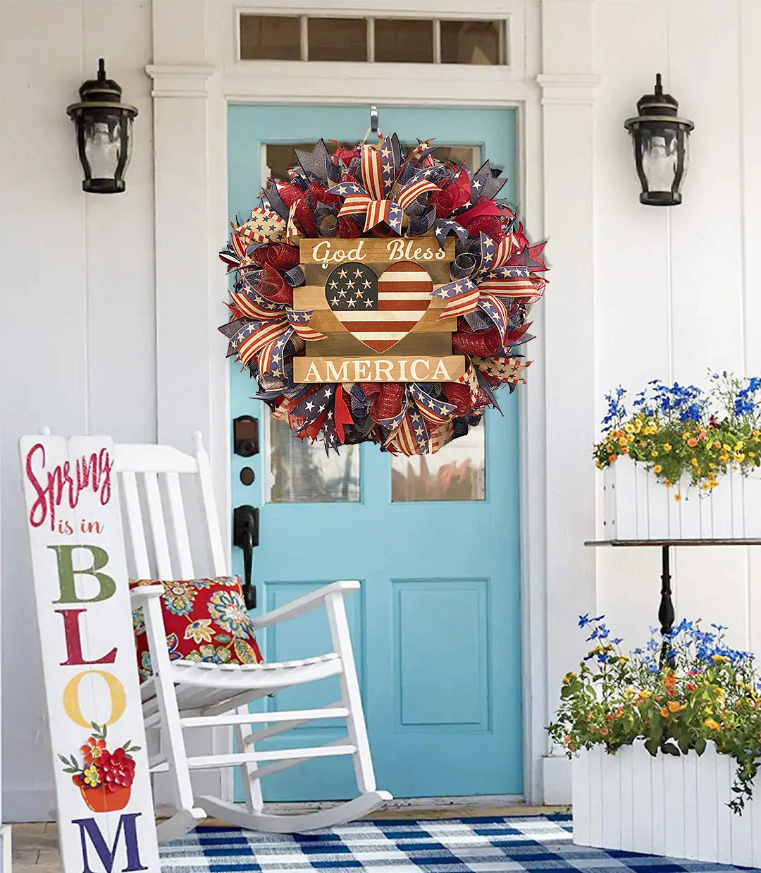🌟This beautiful 4th Of July Wreath is sure to put a smile on the faces of your visitors, and it can be sent to you now! 🌟