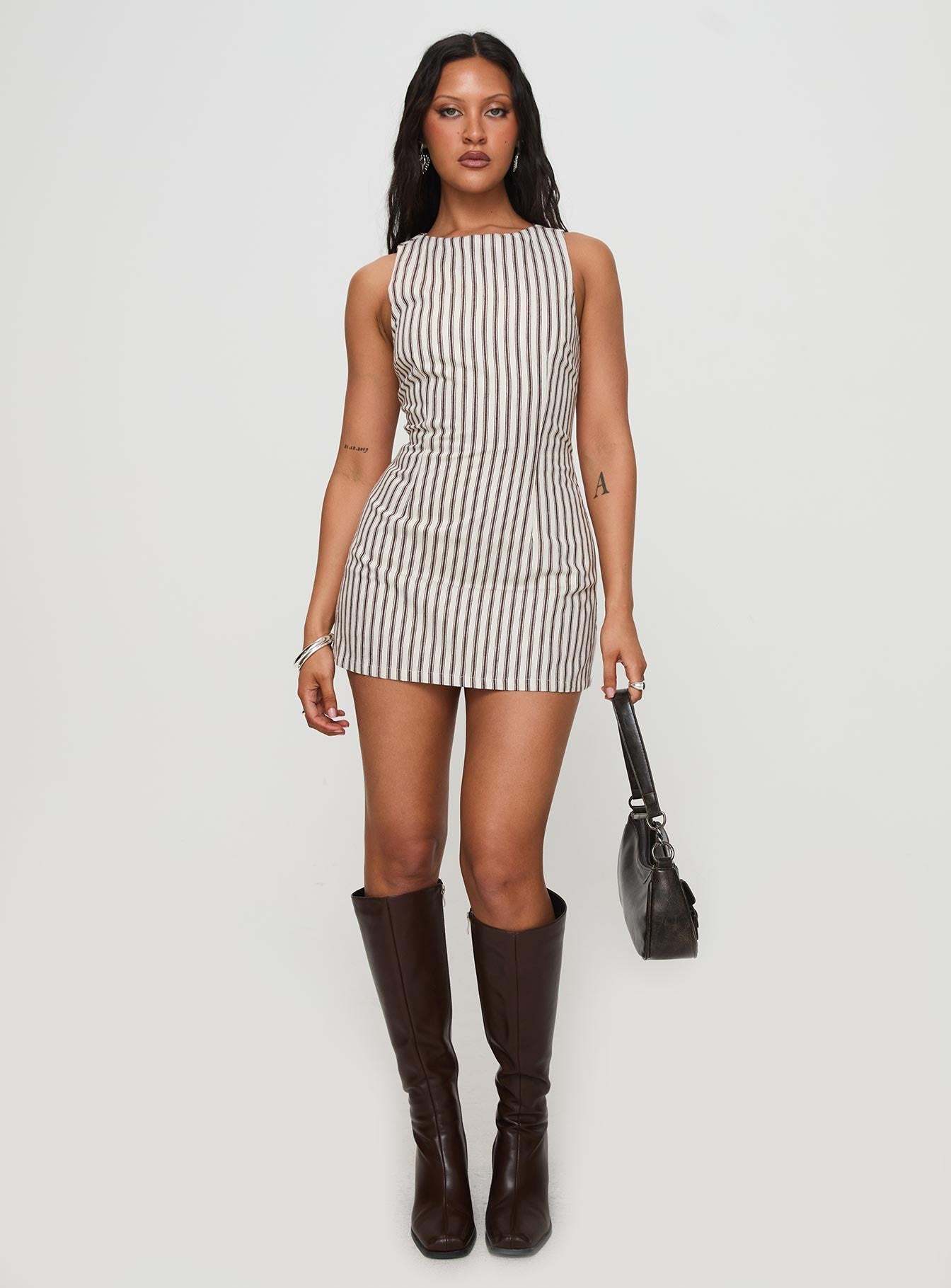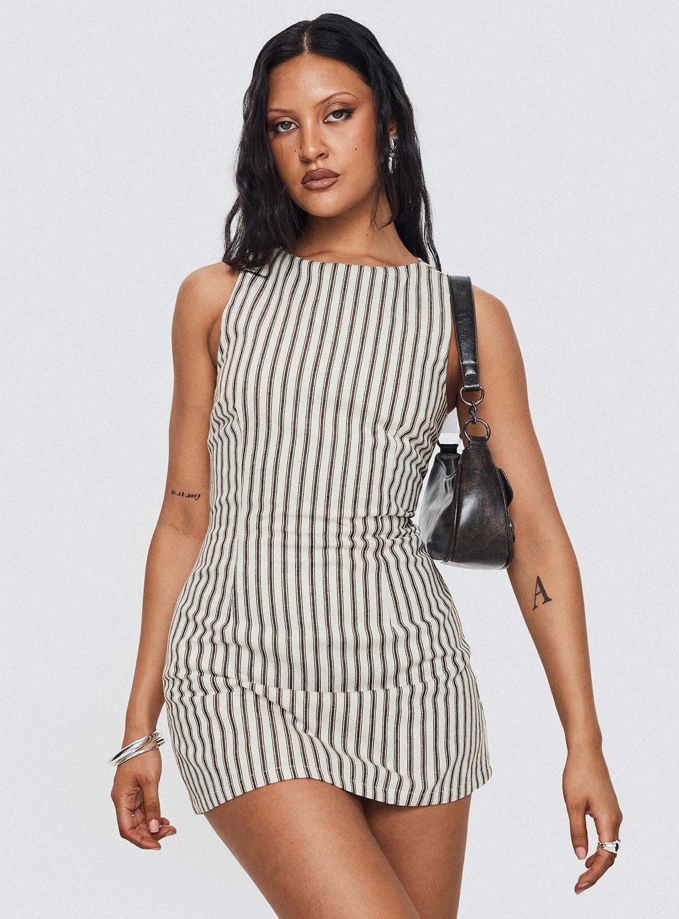 Style: Sleeveless mini with vintage-inspired stripes