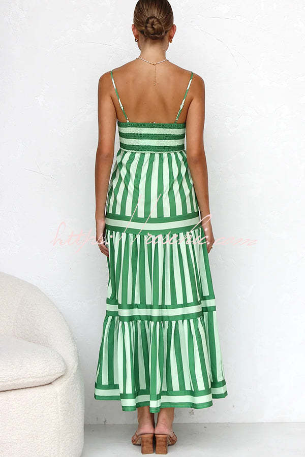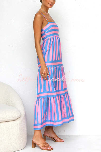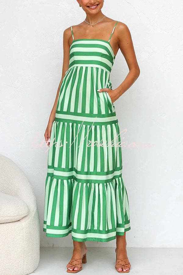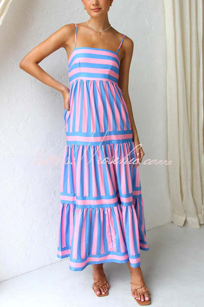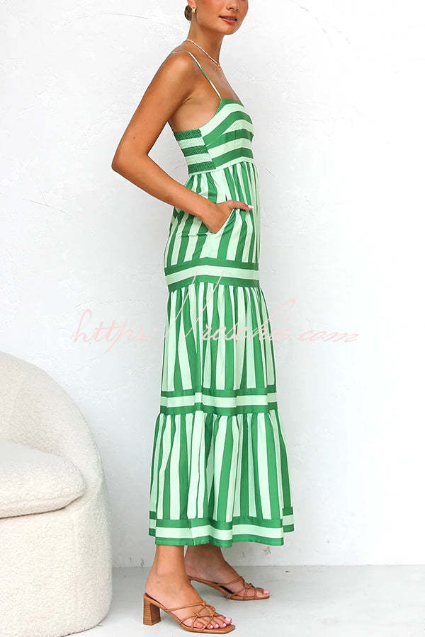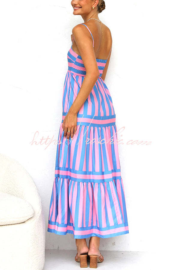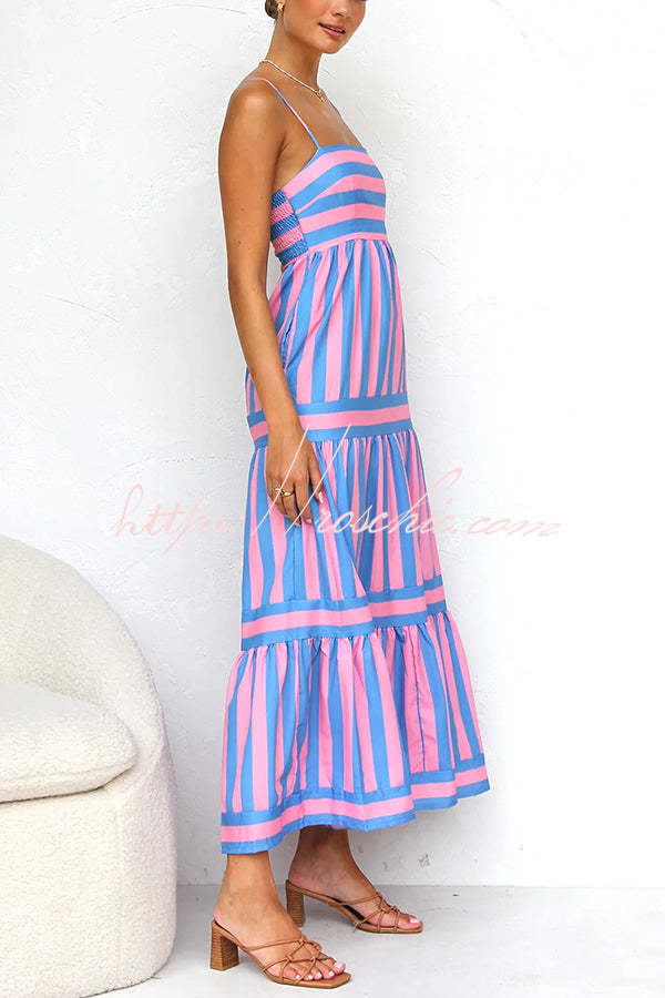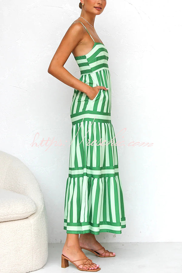 Beachy Dreams Striped Print Back Smocked Pocket A-line Slip Midi Dress