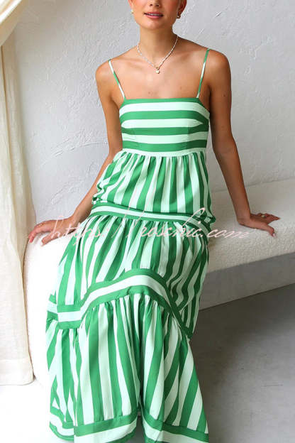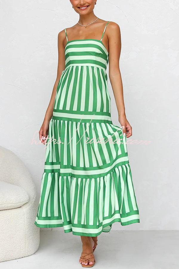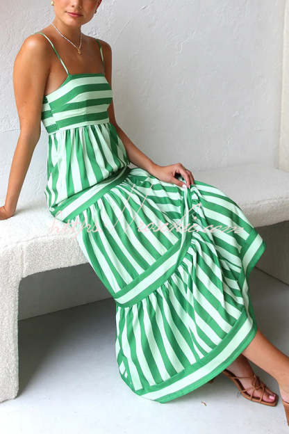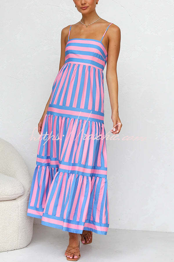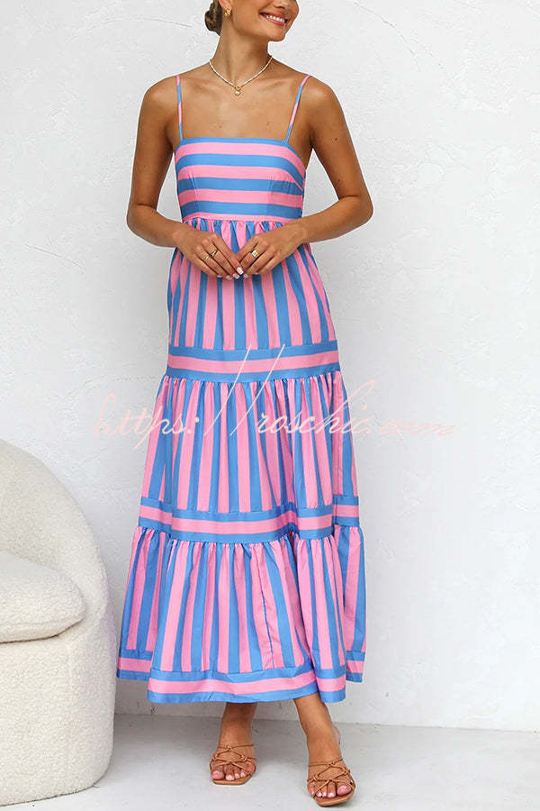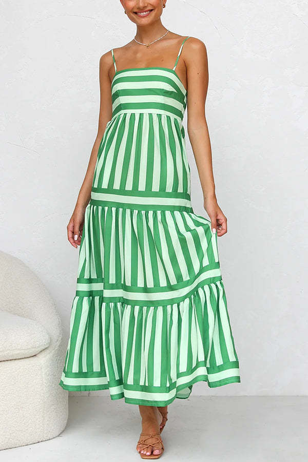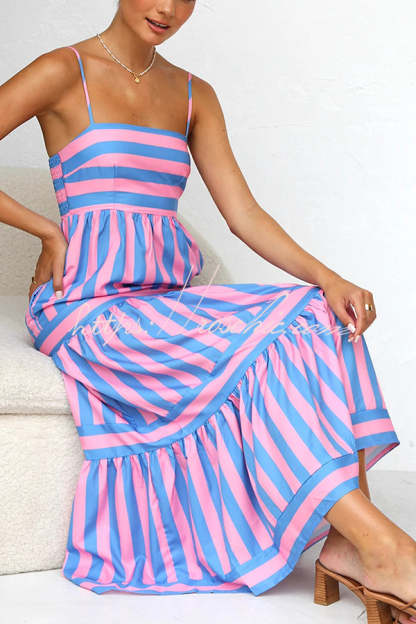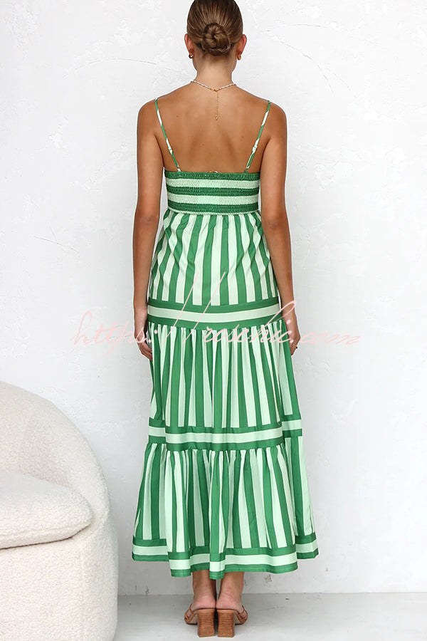 Beachy Dreams Striped Print Back Smocked Pocket A-line Slip Midi Dress