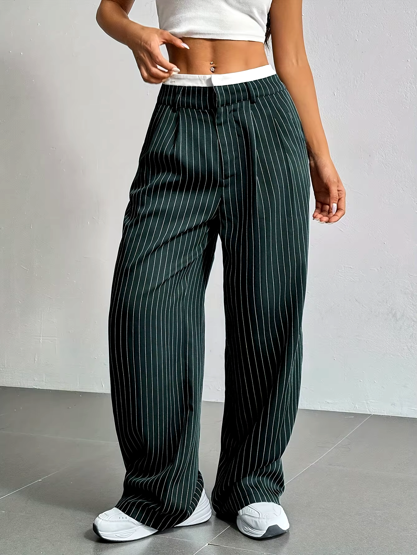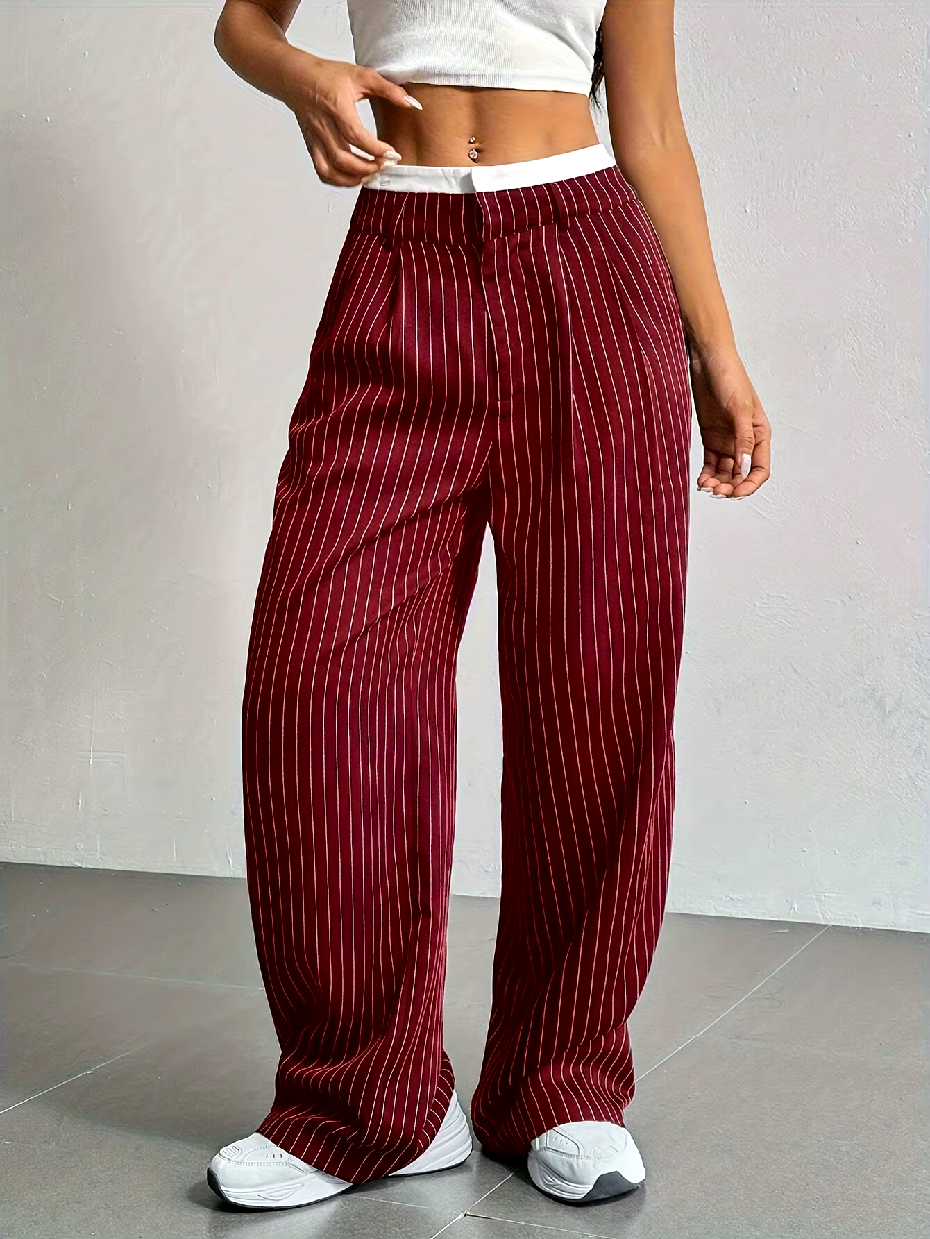 Stripe design on the softest cotton with a breezy wide-leg silhouette in these mid-rise pants. Pairs effortlessly with casual tanks or street-style sneakers for an easy off-duty look.