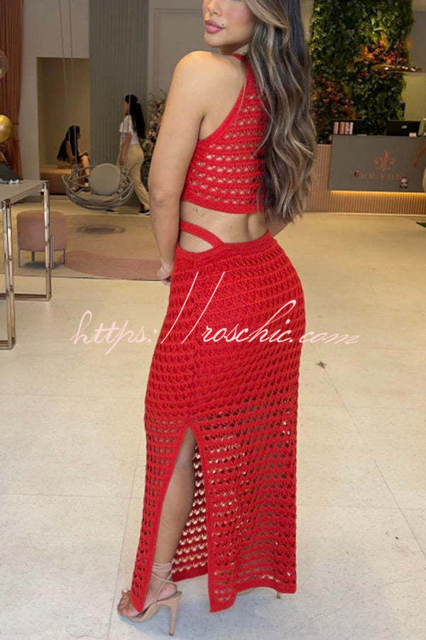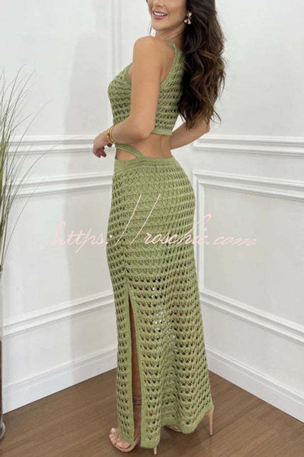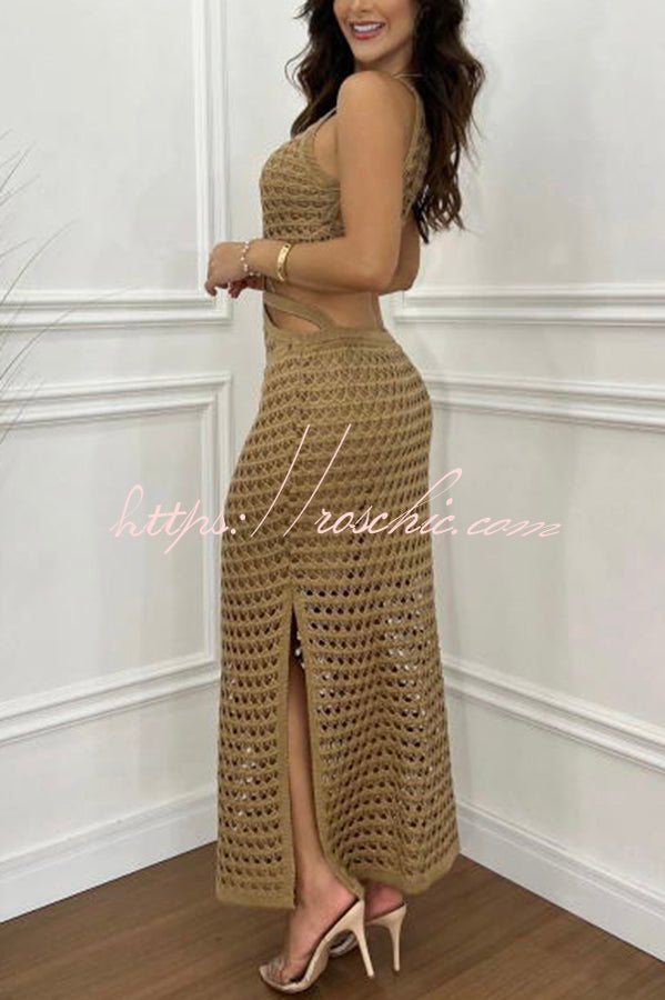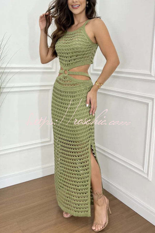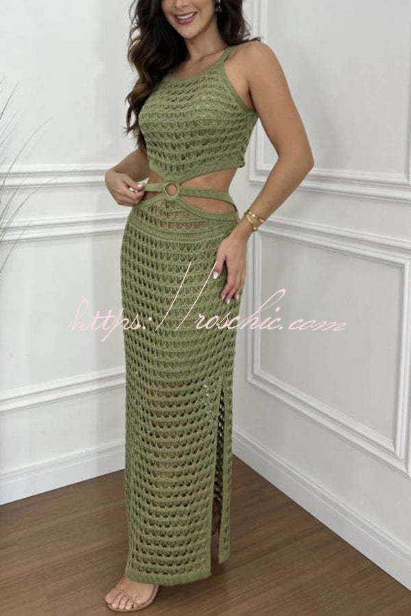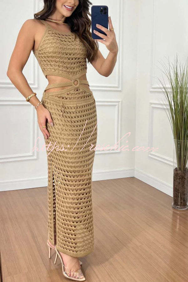 Stunning Gaze Knit Texture Ring Side Waist Cutout Stretch Maxi Dress