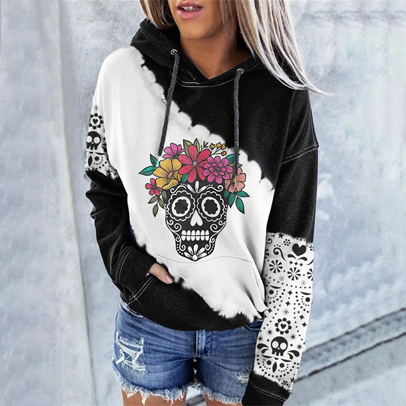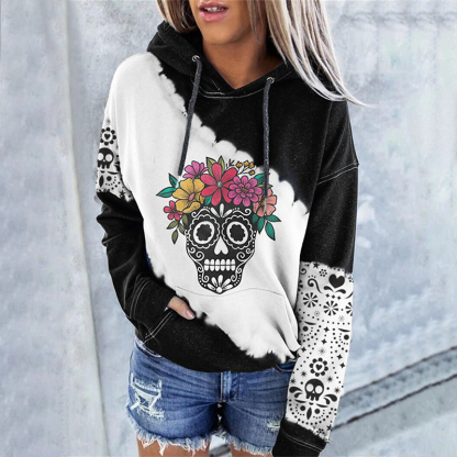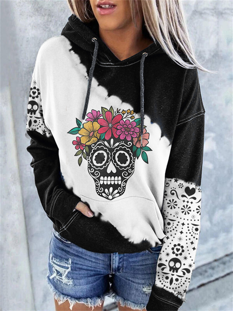 Sugar Skulls With Flowers Tie Dye Hoodie