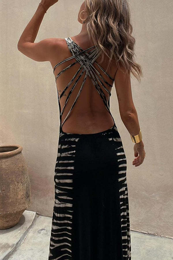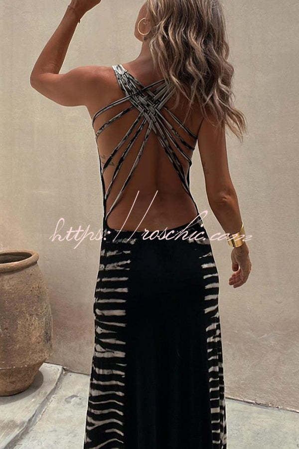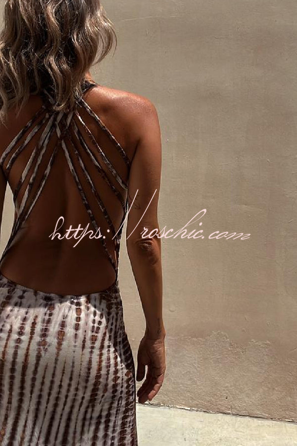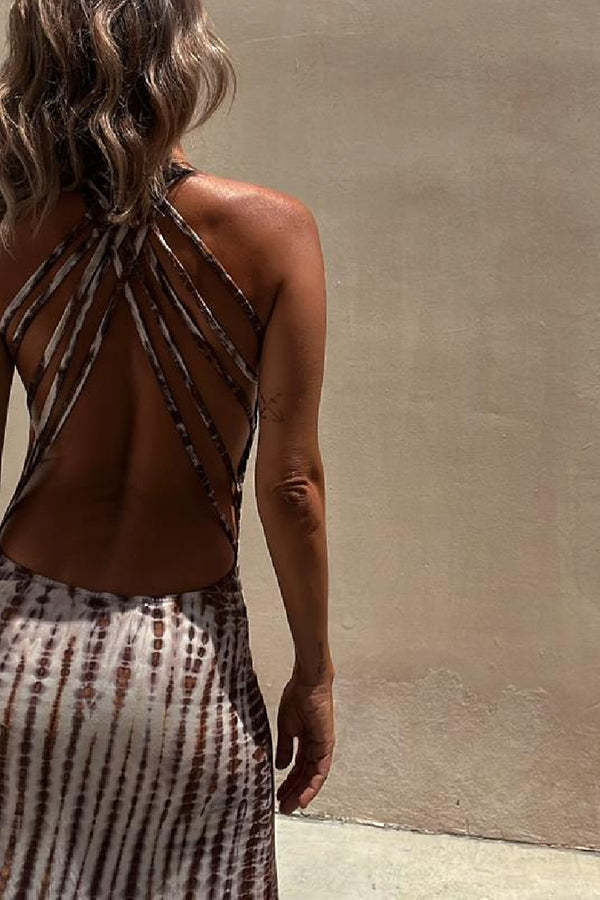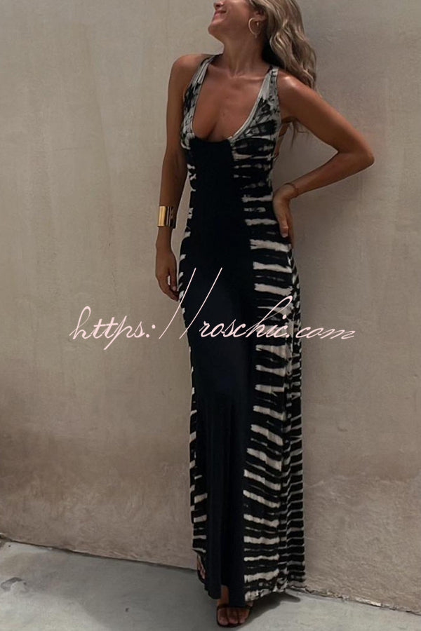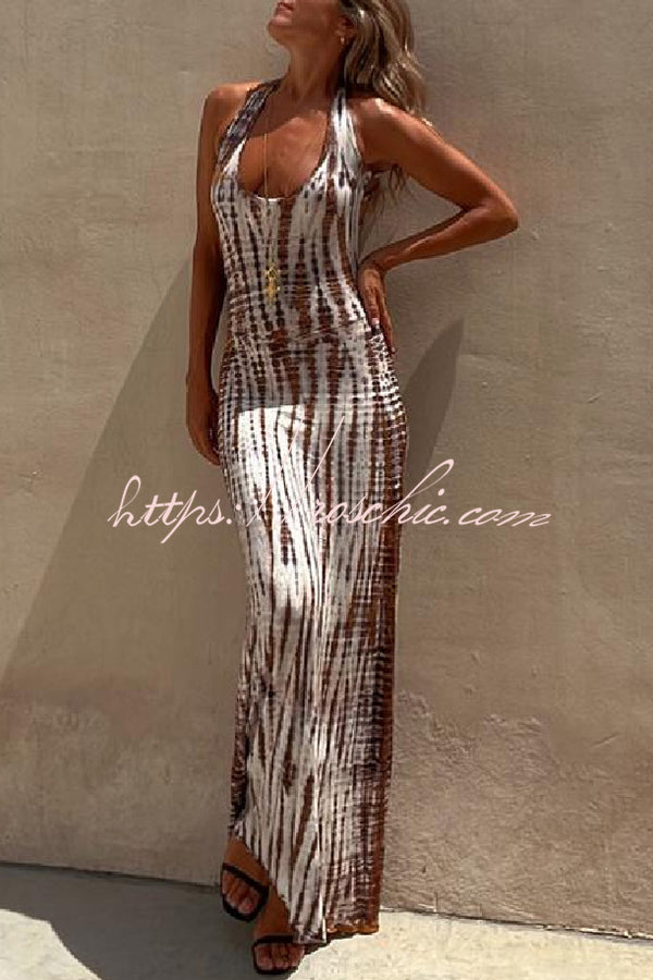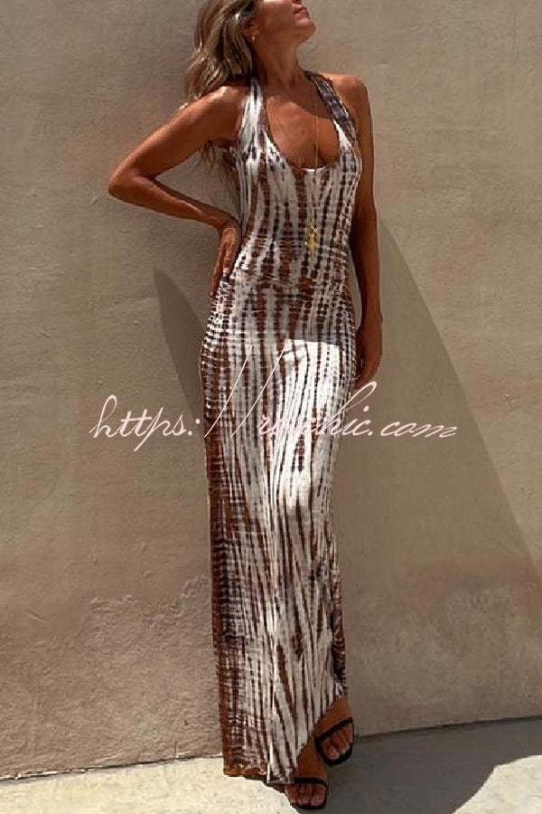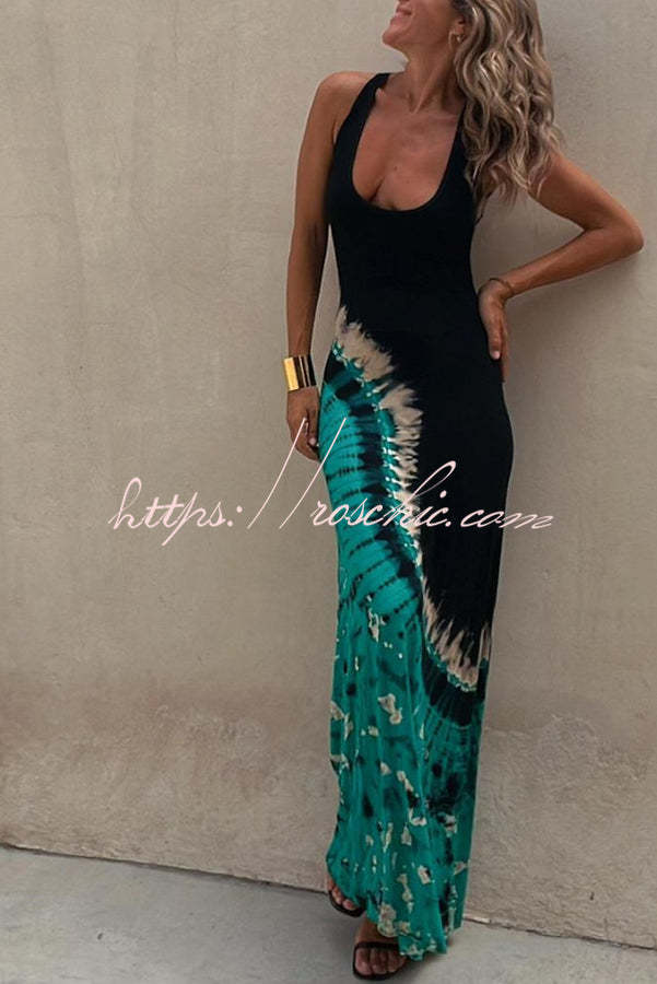 Summer Adventures Tie-dye Print Back Lace-up Stretch Maxi Dress