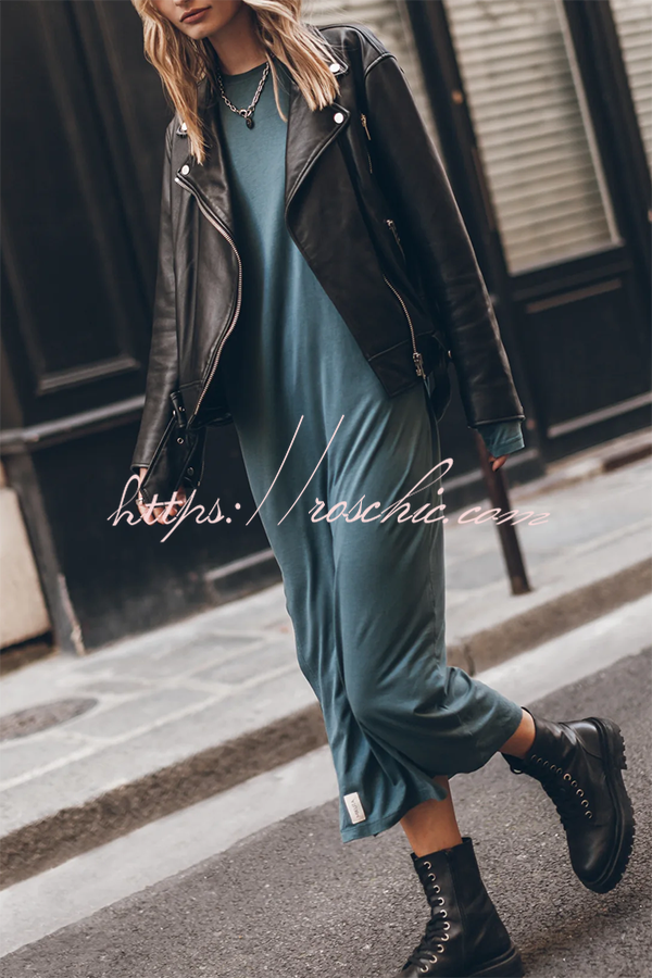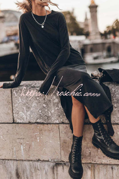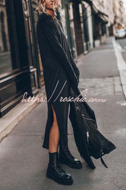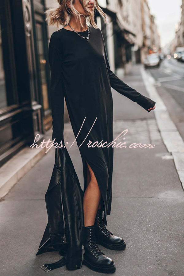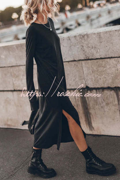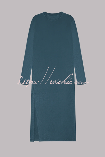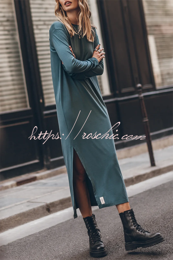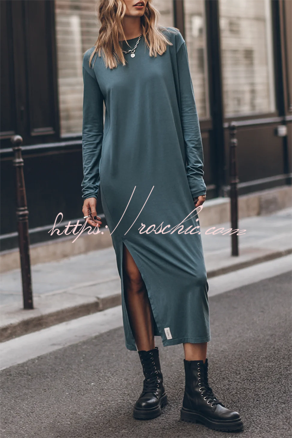 The Bedisse Cotton Blend Long Sleeve Relaxed Slit Midi Dress