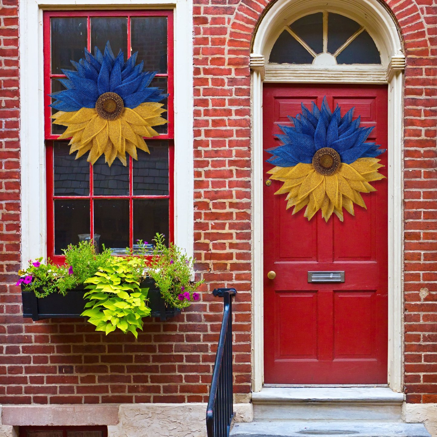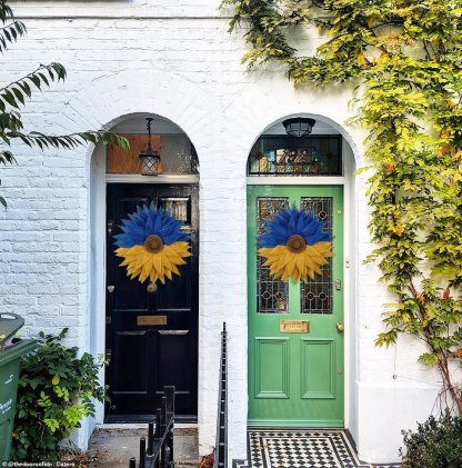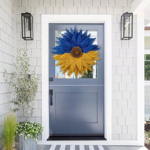 🌞This blue and yellow sunflower flower wreath done in the colors of the Ukrainian flag can be hung on your front door to show your solidarity with Ukraine.