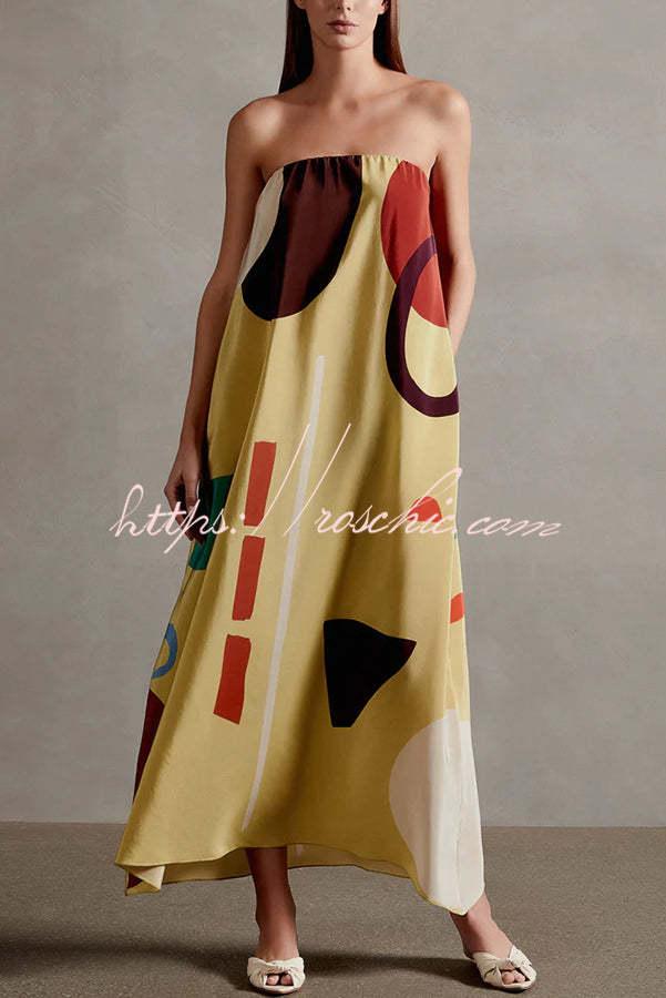 Miss Me Satin Unique Printed Off Shoulder Pocketed Loose Maxi Dress