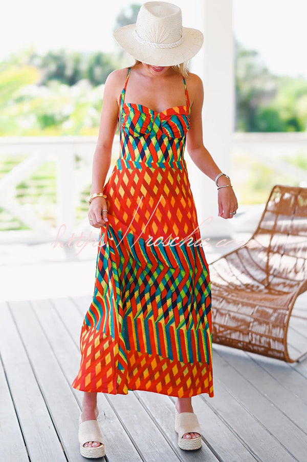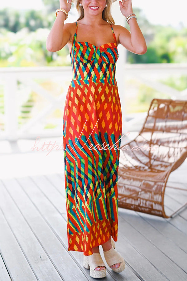 Jamila Unique Printed Sexy Backless High Rise Suspender Maxi Dress