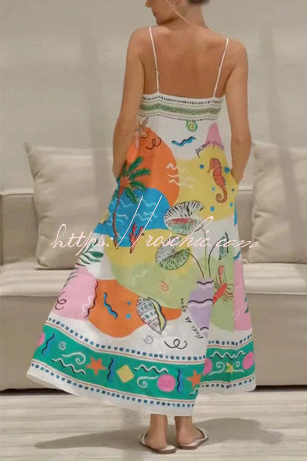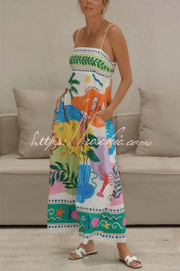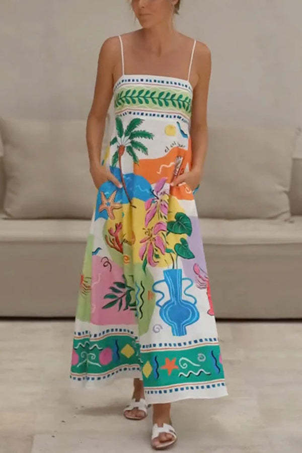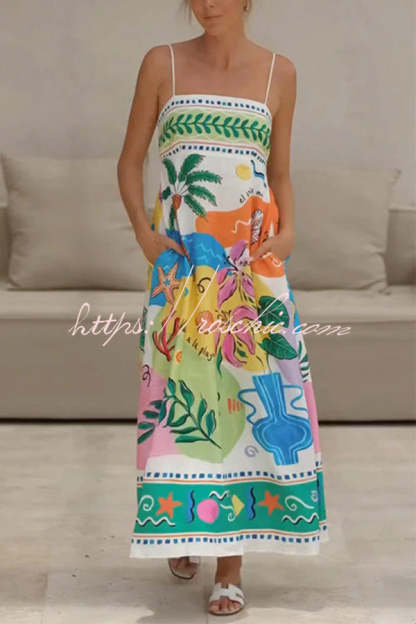 Unique Printed Strapless Sleeveless Resort Style Midi Dress