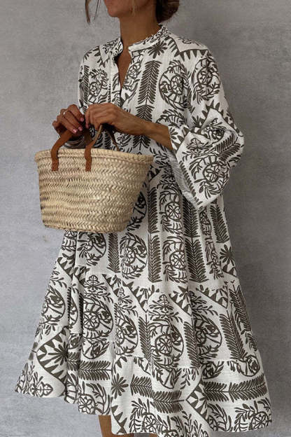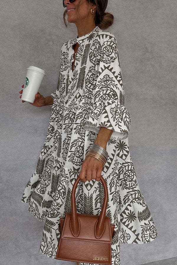 Unique Printed V-neck Bell Sleeve Mini Dress