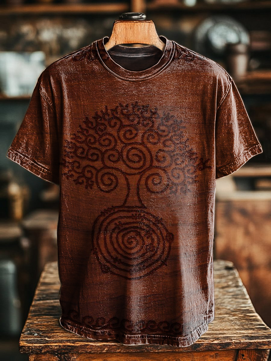Unisex Art Painting Ethnic Style Tree of Life Retro Printed Round Neck T-Shirt