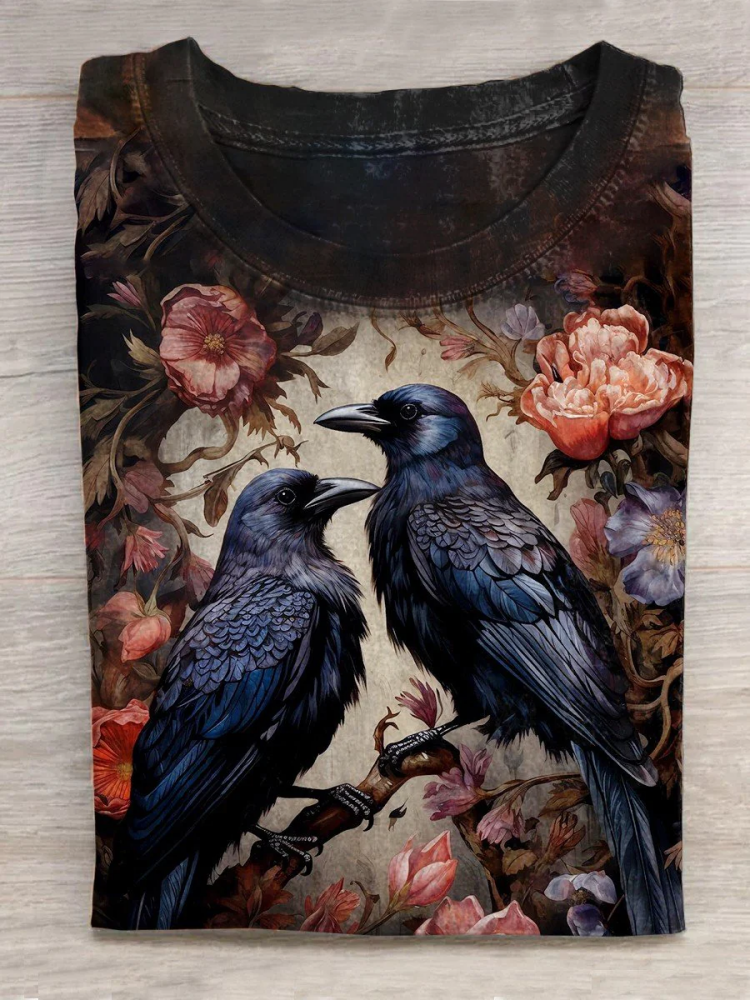 Unisex Halloween Raven Floral Print Casual T-Shirt