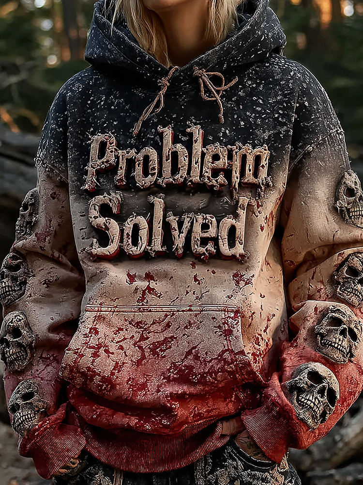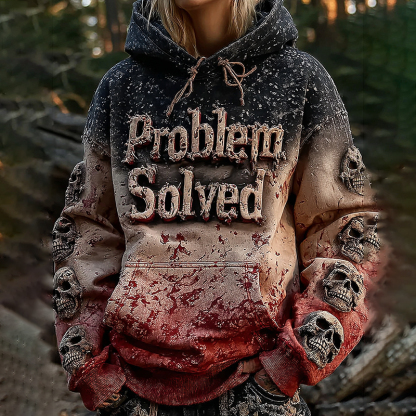 Unisex Vintage Bloody "problem Solved" With Skull Art Hoodie