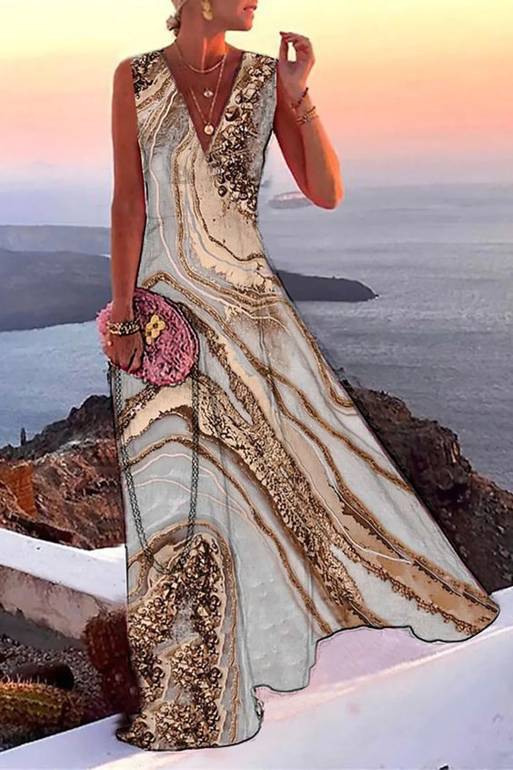 V-Neck Holiday Style Long Dress