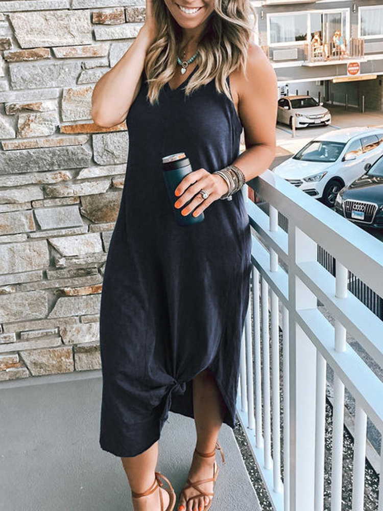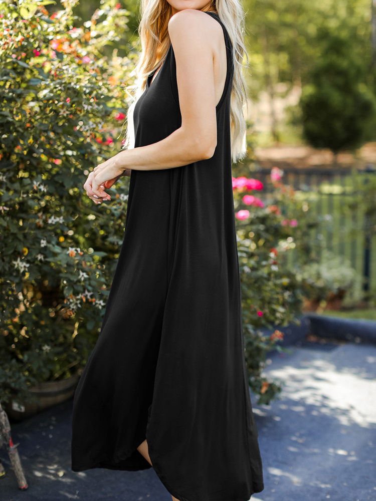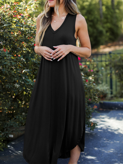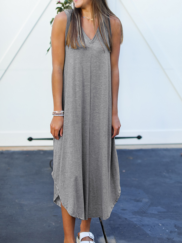 Versatile Solid Color V Neck Sleeveless Maxi Dress