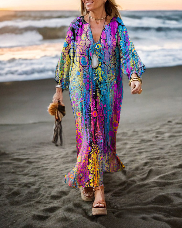 Vintage Abstract Art Long Sleeve Cardigan Dress