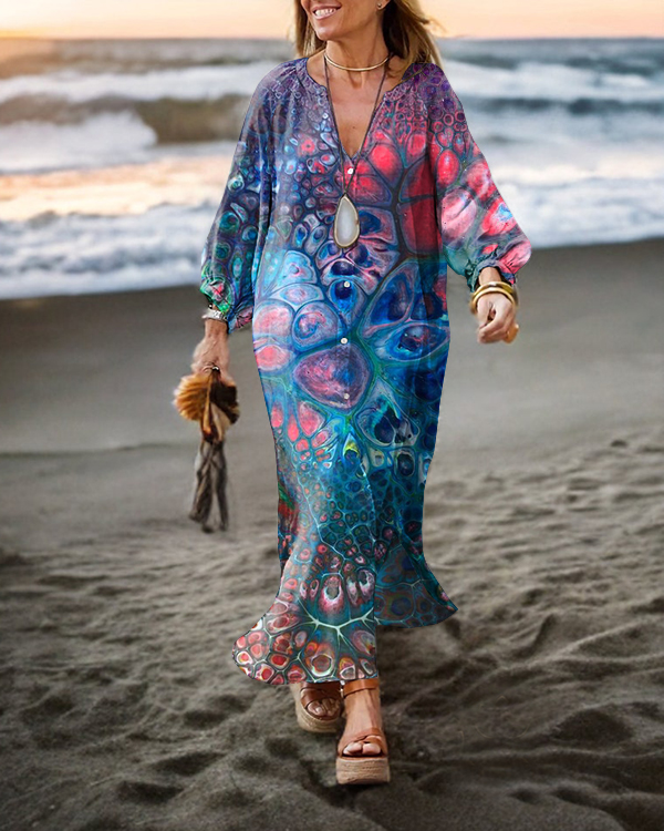 Vintage Abstract Art Long Sleeve Cardigan Dress