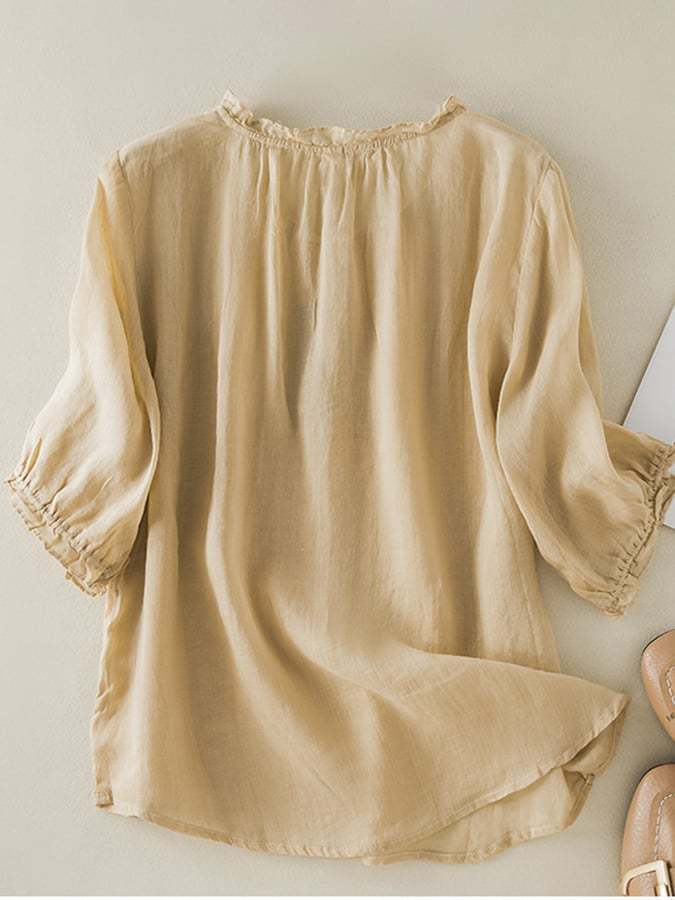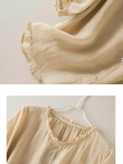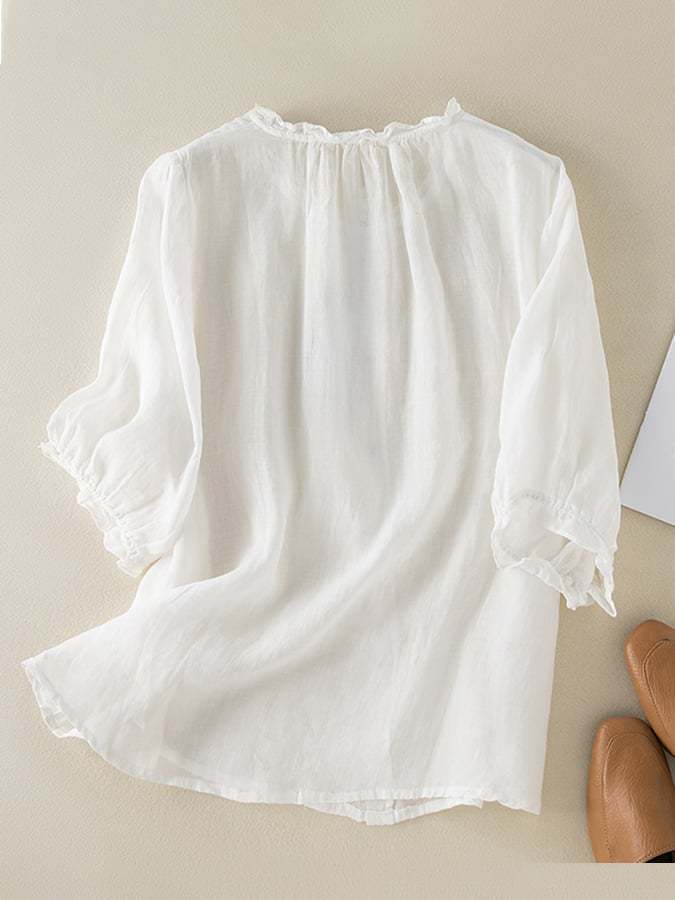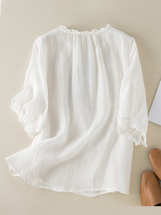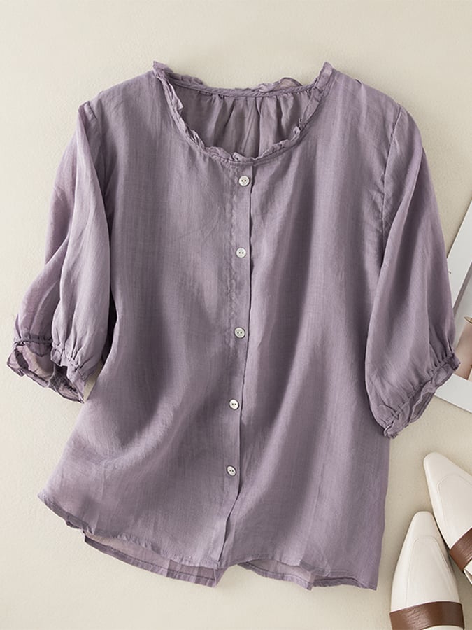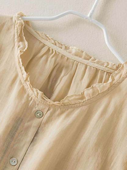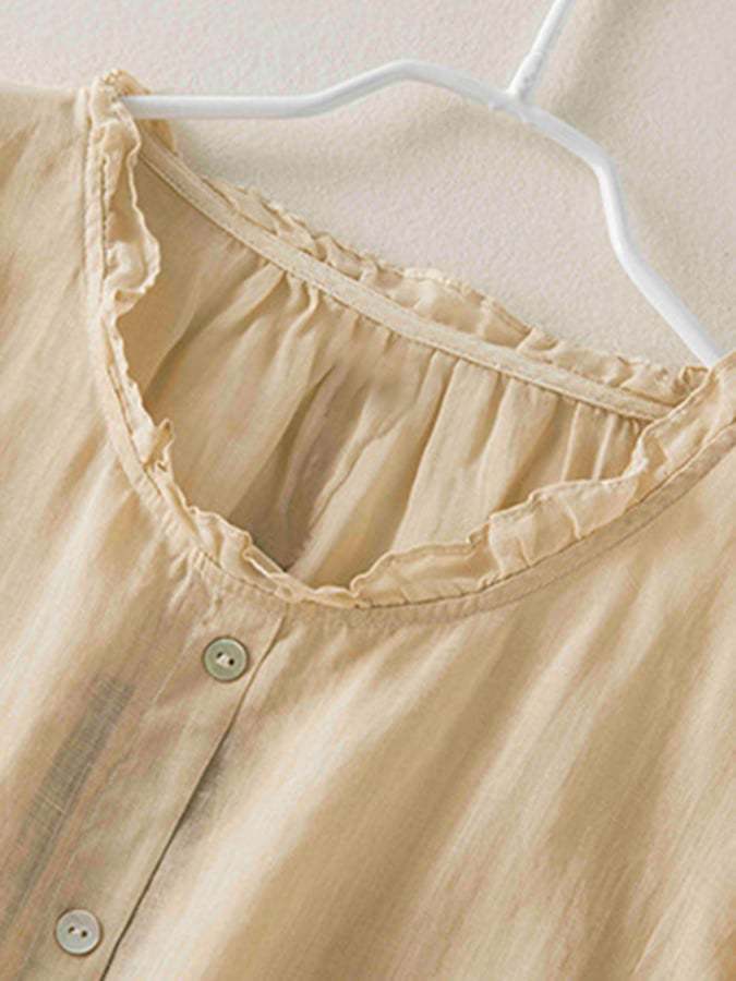 Vintage Art Ruffle Round Neck Casual Shirt