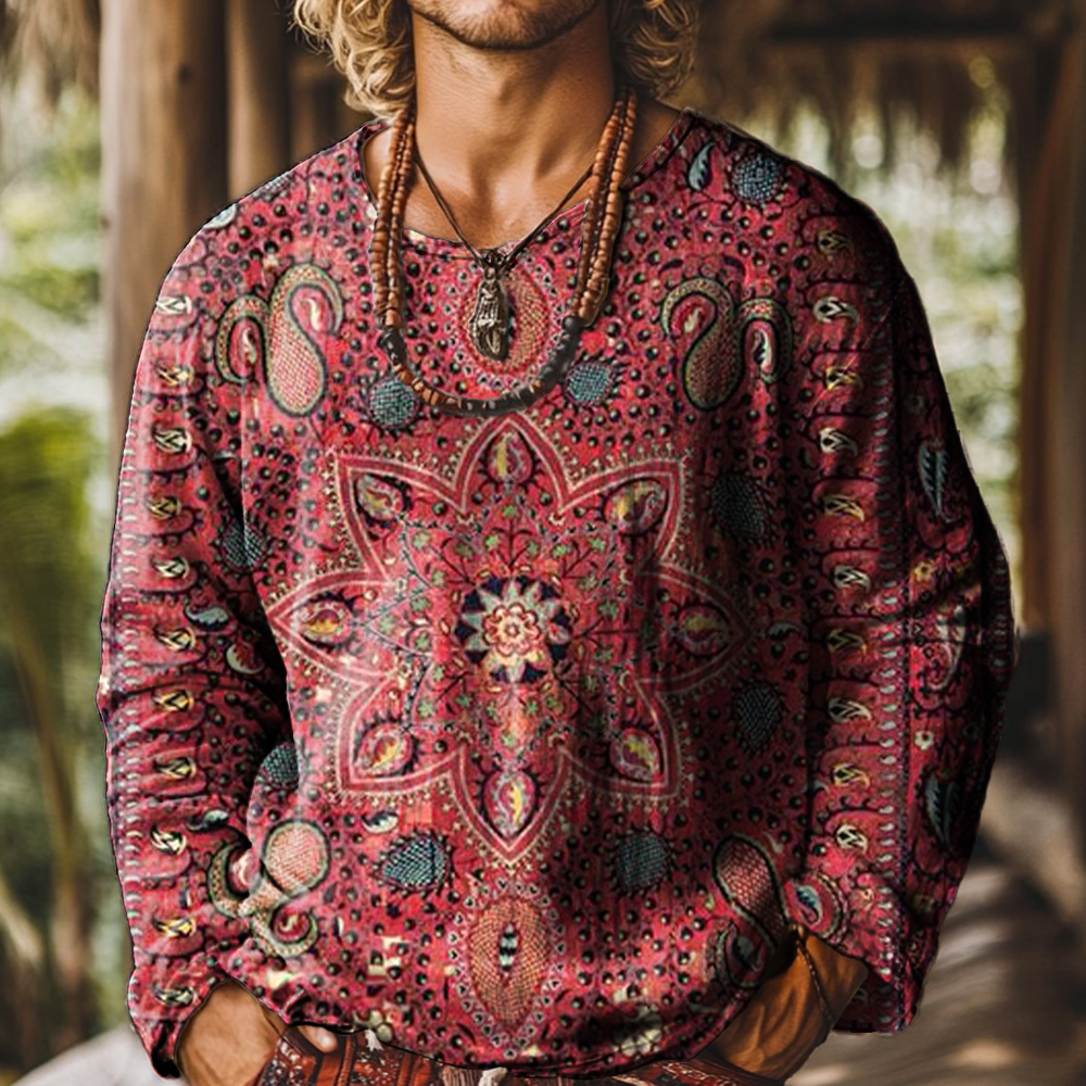 Vintage Bohemian Floral Art Print Casual 100% Cotton Shirt