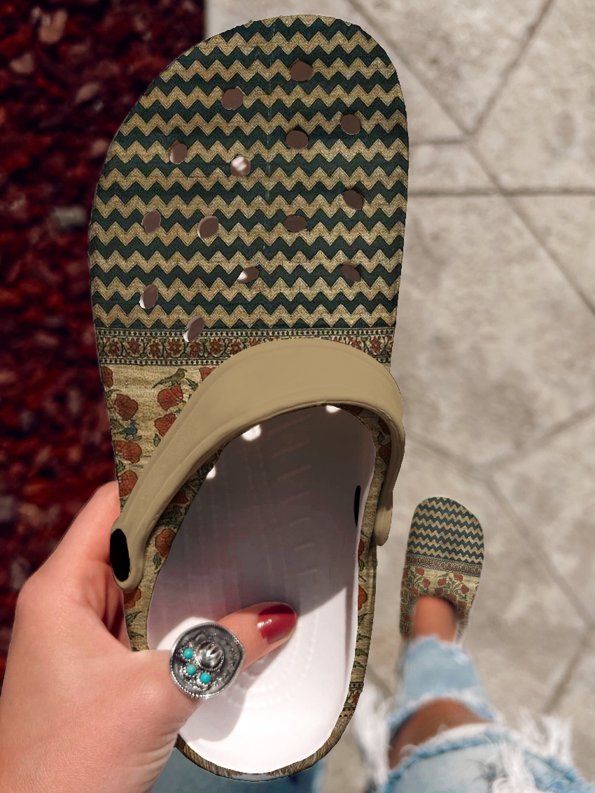 Vintage Bohemian Floral Art Print Casual Hole Slippers