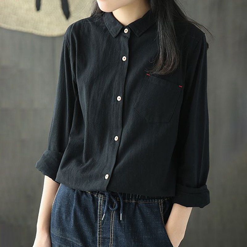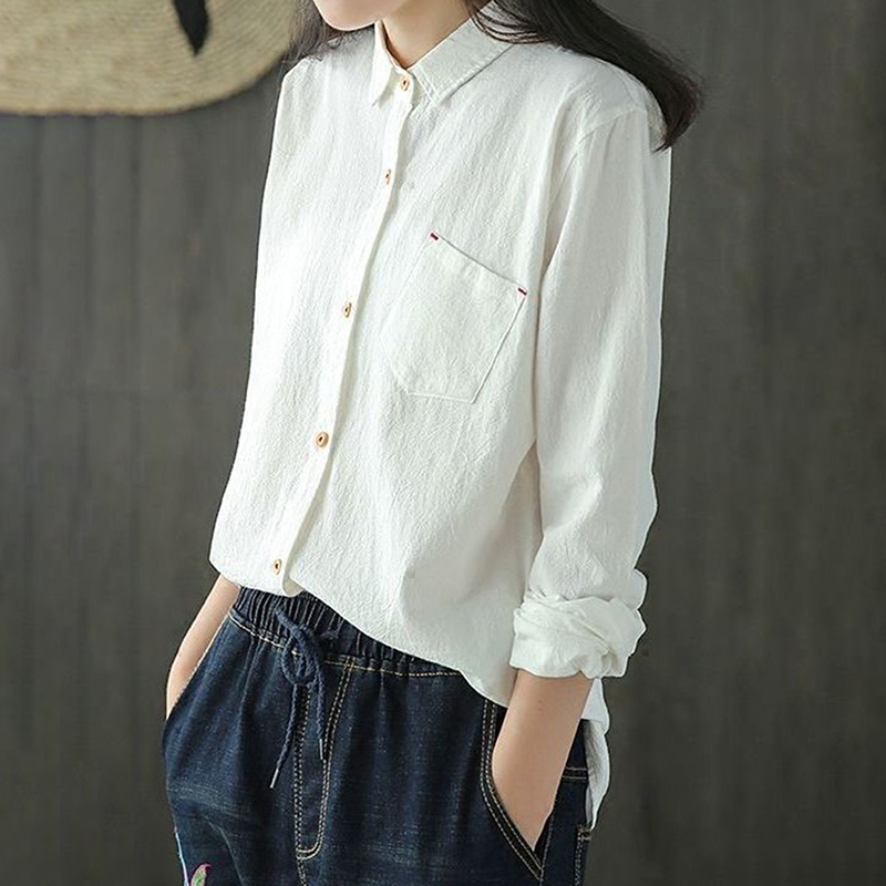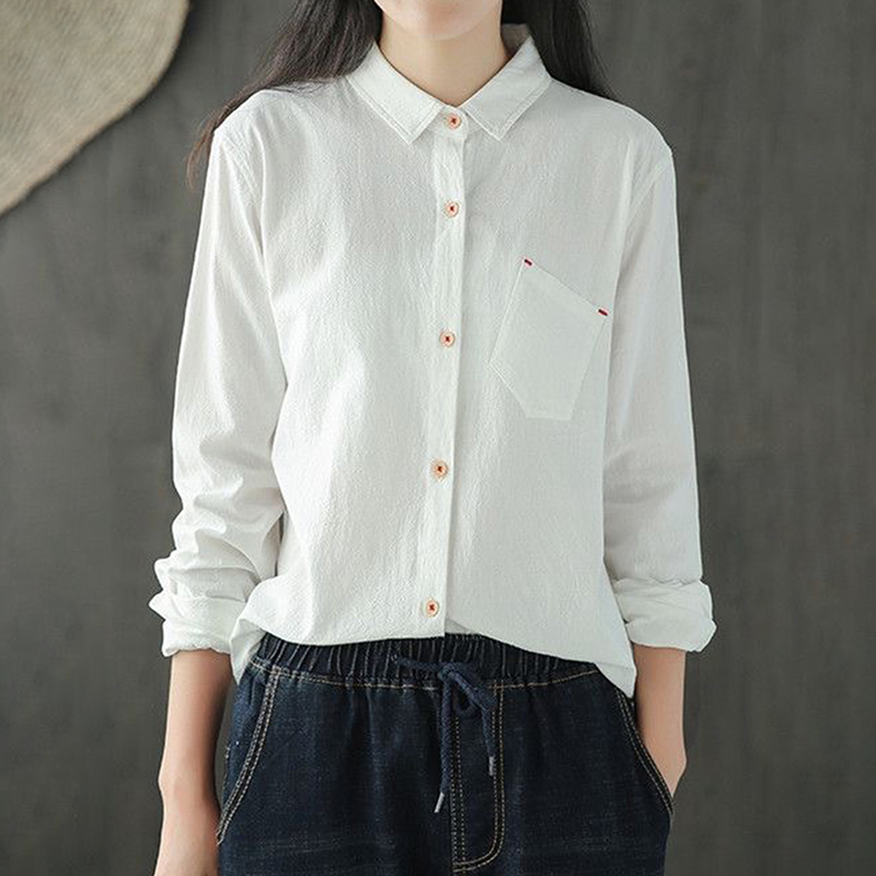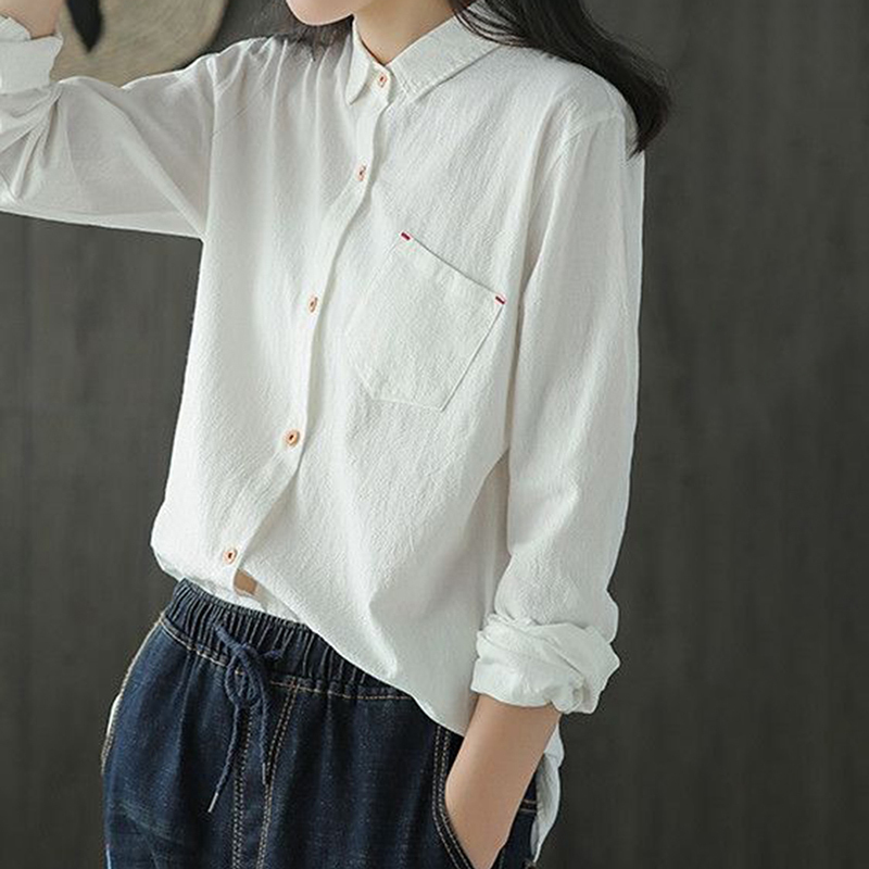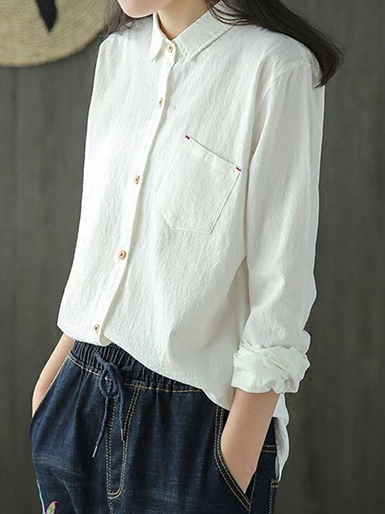 Vintage Button Plain Long Sleeve Comfy Daily Shirt