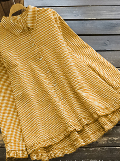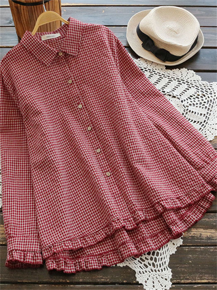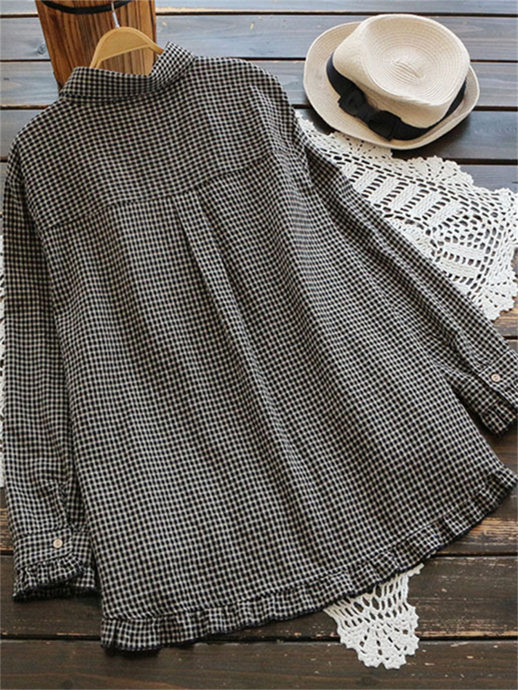 Vintage Check Ruffle Hem A Line Blouse