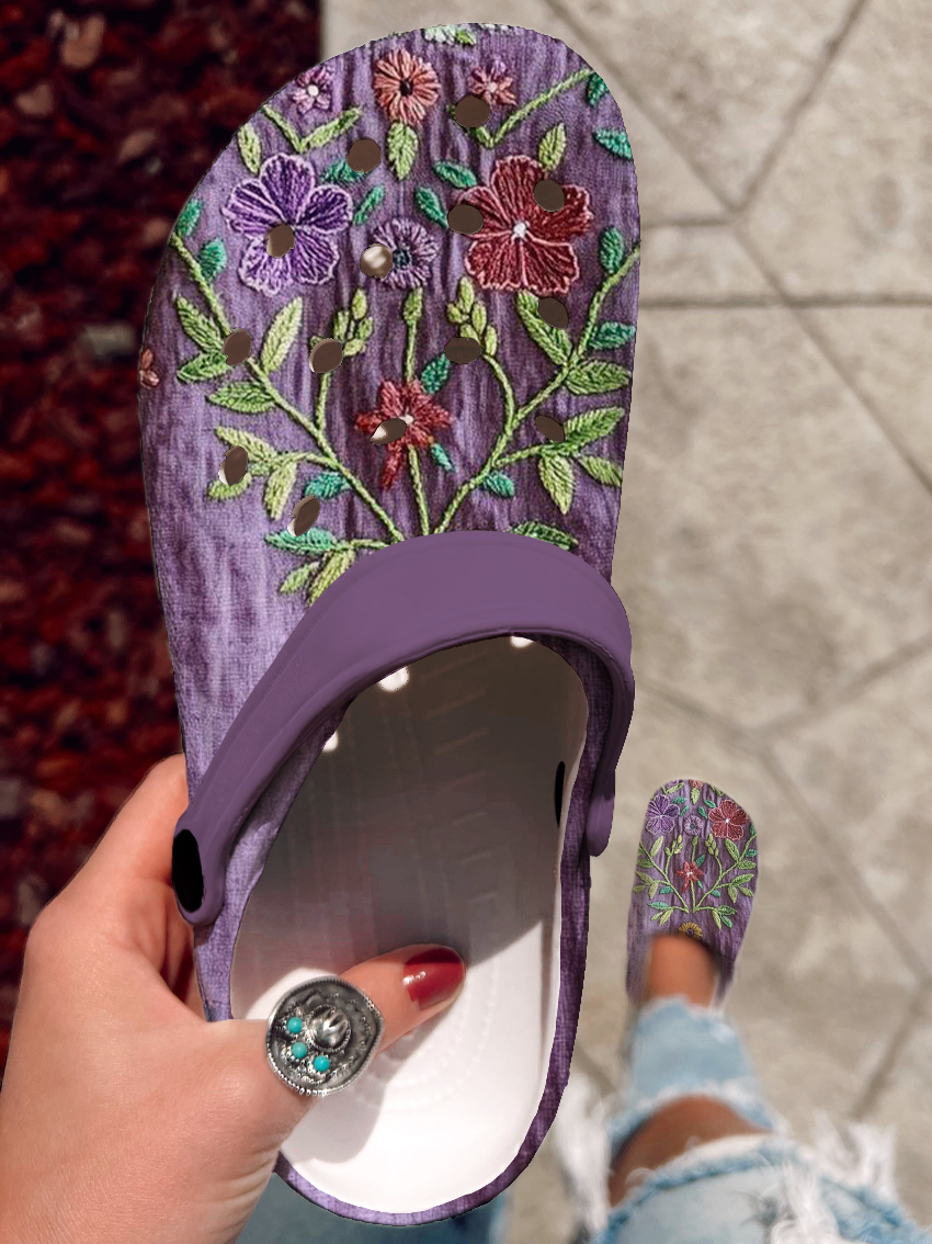 Vintage Ethnic Floral Art Print Casual Hole Slippers