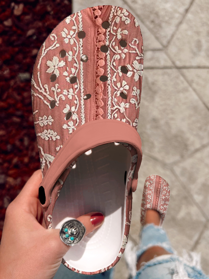 Vintage Ethnic Floral Art Print Casual Hole Slippers