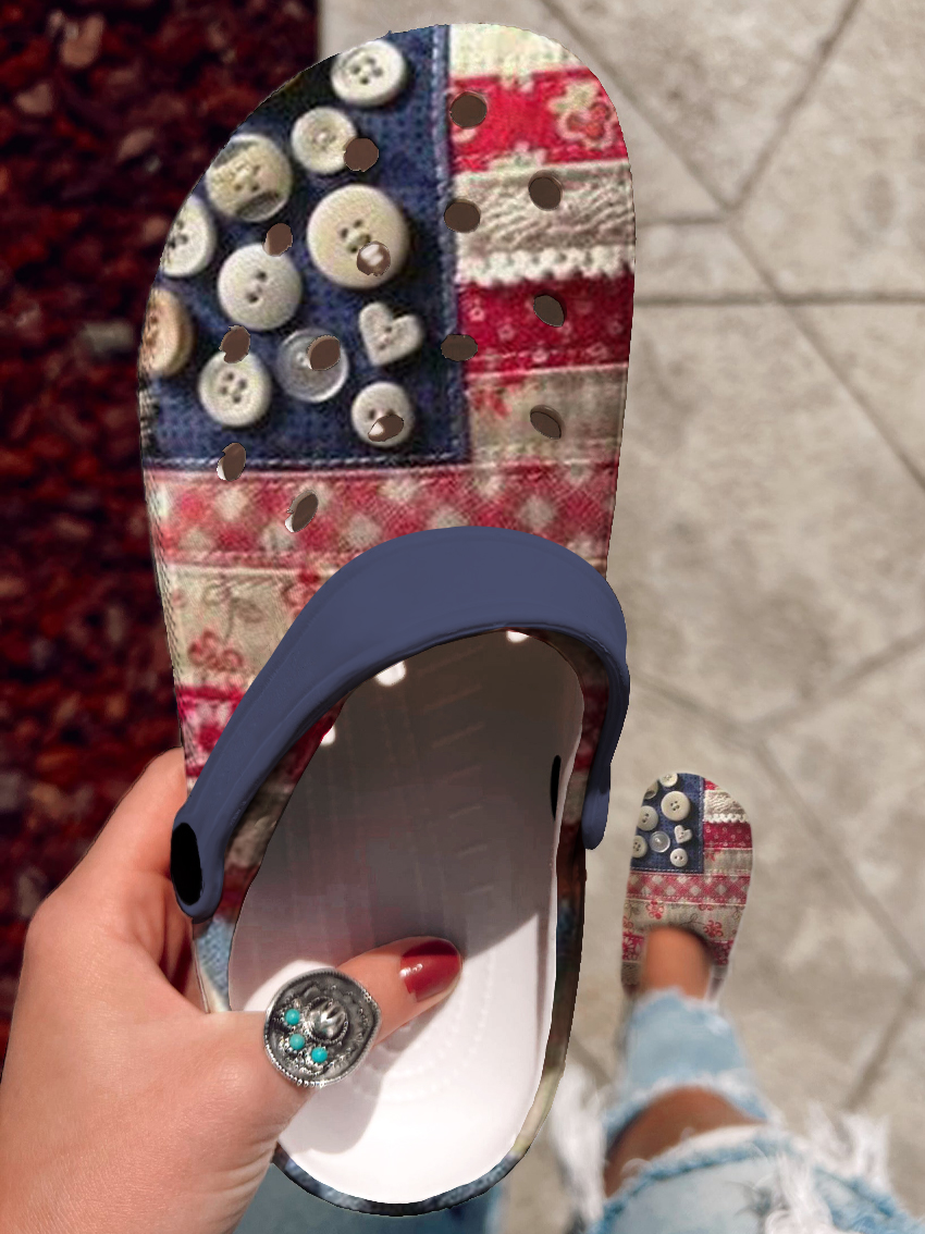 Vintage Flag Floral Art Print Casual Hole Slippers