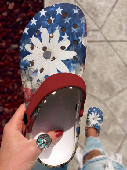 Vintage Flag Floral Art Print Casual Hole Slippers