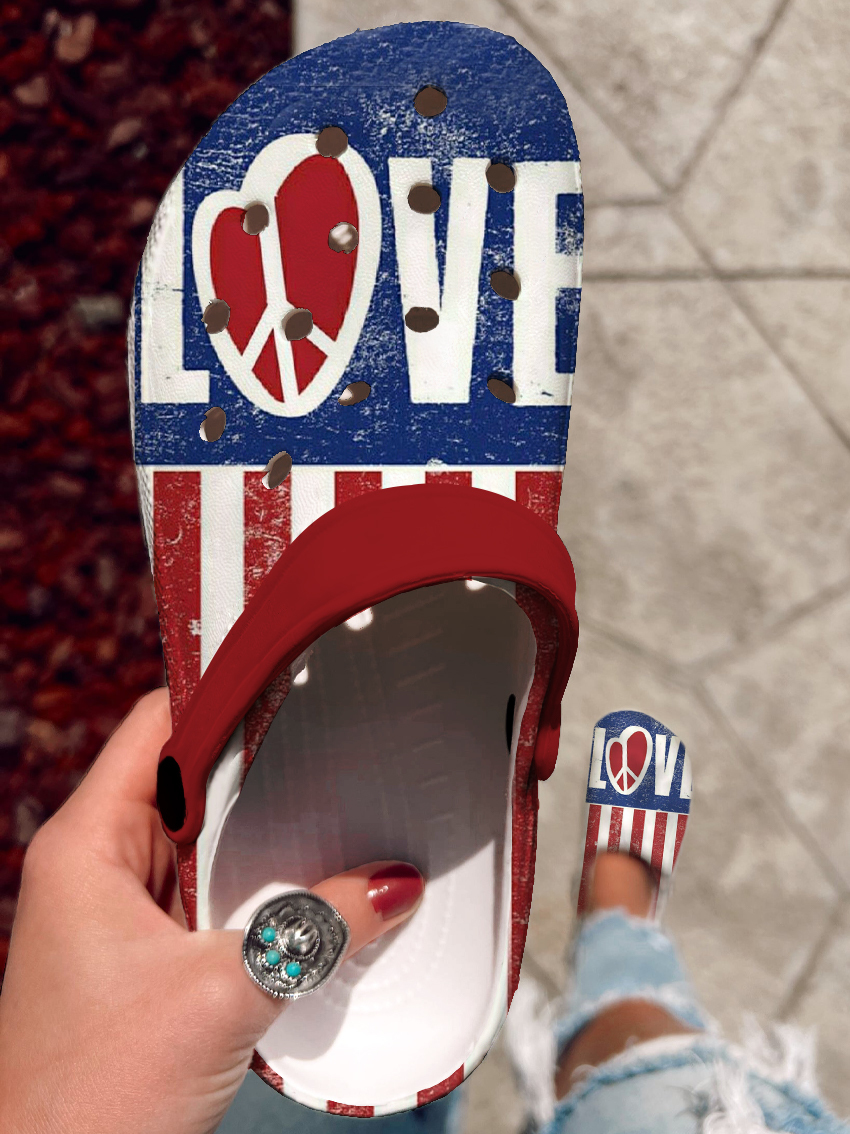Vintage Flag Love Art Print Casual Hole Slippers
