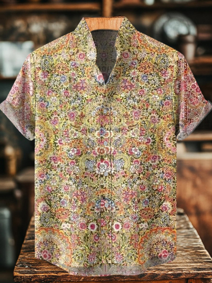 Vintage Floral Art Print Casual 100% Cotton Shirt