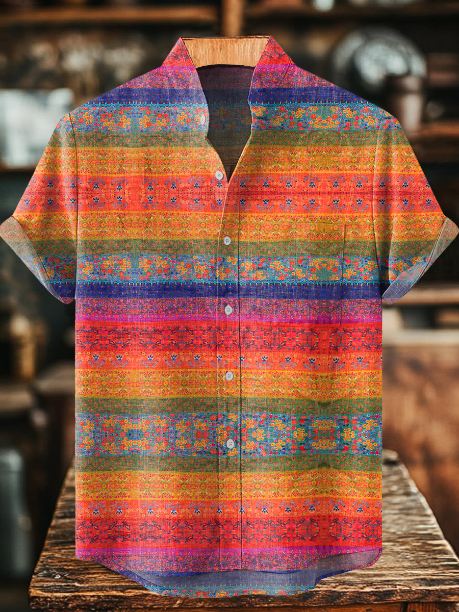 Vintage Floral Art Print Casual 100% Cotton Shirt