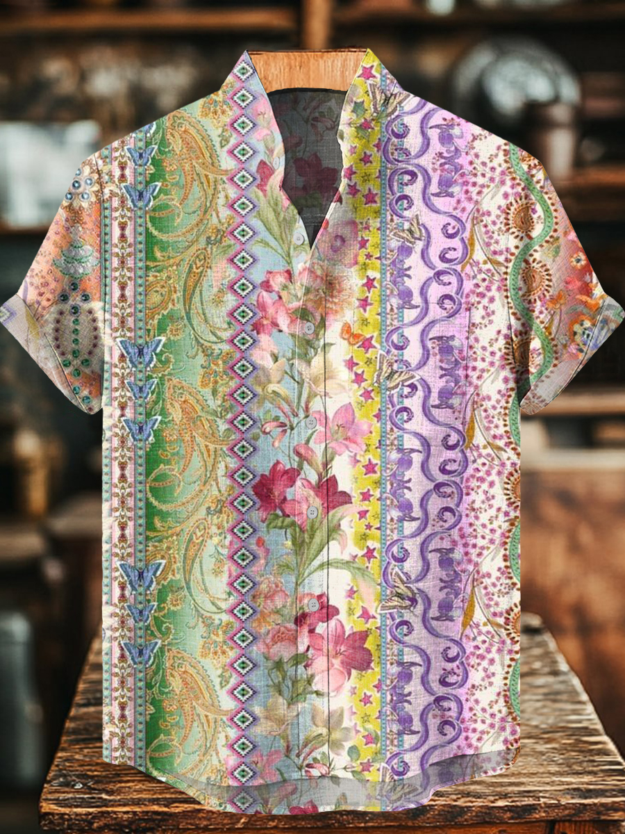 Vintage Floral Art Print Casual 100% Cotton Shirt