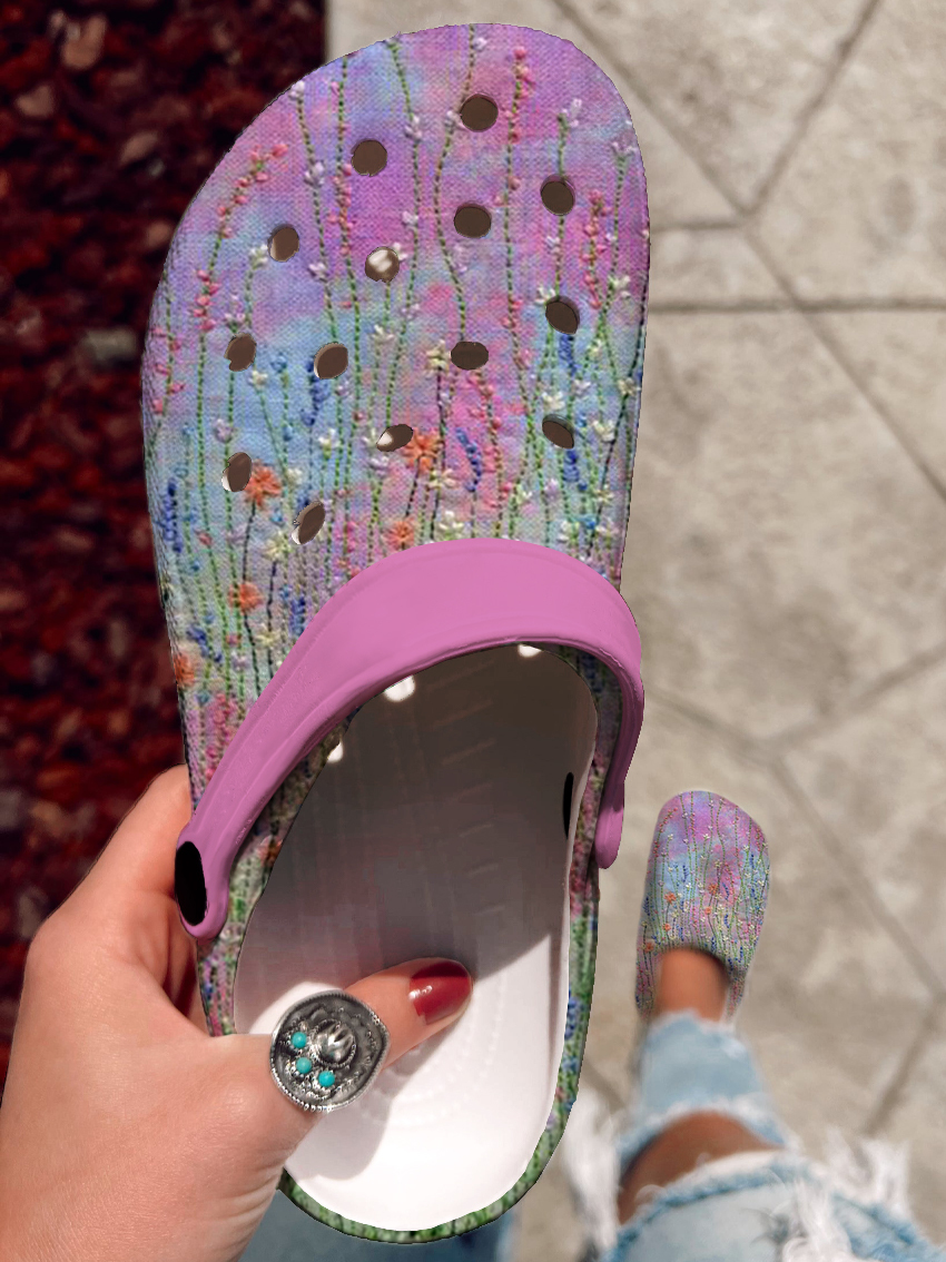 Vintage Floral Art Print Casual Hole Slippers
