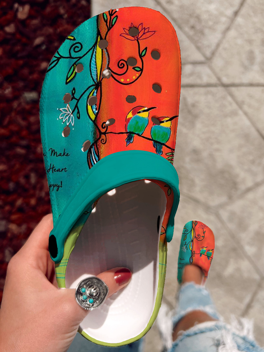 Vintage Floral Bird Art Print Casual Hole Slippers