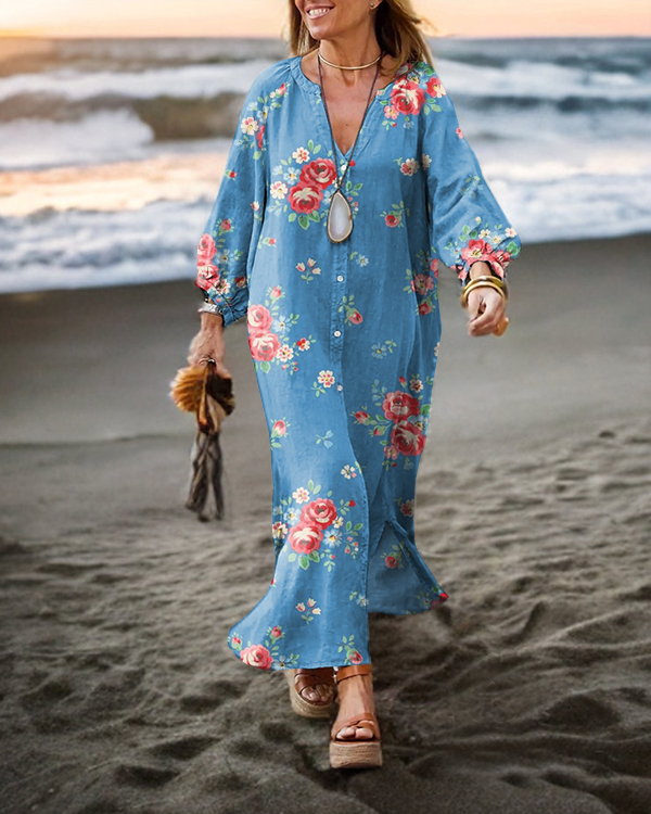 Vintage Floral Long Sleeve Cardigan Dress
