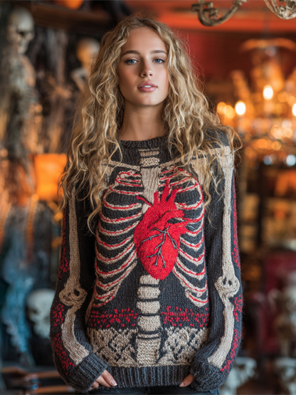Vintage Halloween Anatomy Art Chunky Knitted Sweater
