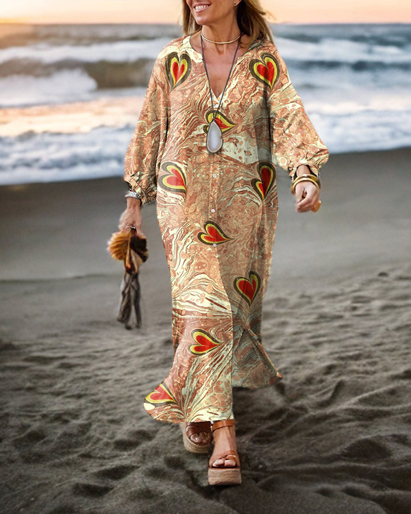 Vintage Heart Abstract Art Long Sleeve Cardigan Dress