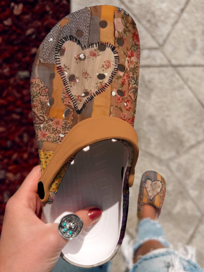 Vintage Heart Pattern Art Print Casual Hole Slippers
