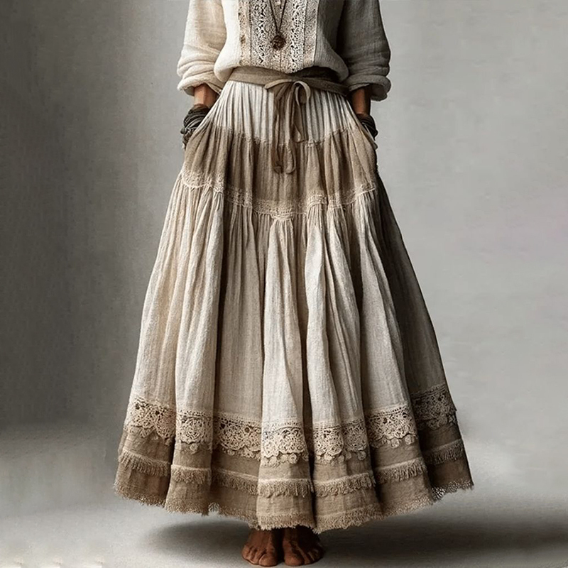 Vintage Lace Embroidered Art Linen Blend Skirt