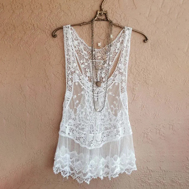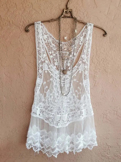 Vintage Lace See-through Look Comfy Tank Top