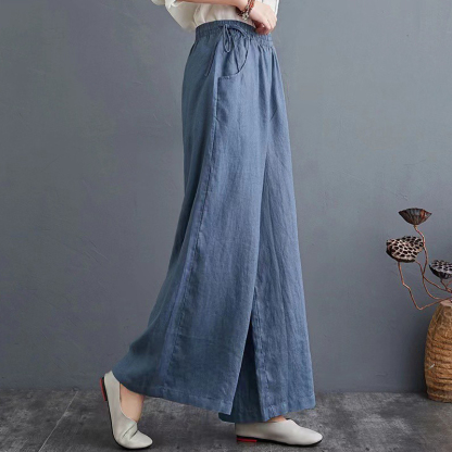 Vintage Lace Up Cotton Linen Pocket Comfy Pants