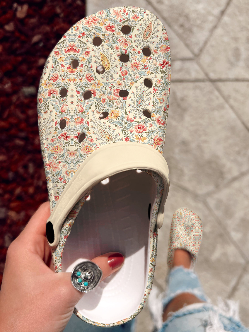 Vintage Paisley Floral Art Print Casual Hole Slippers