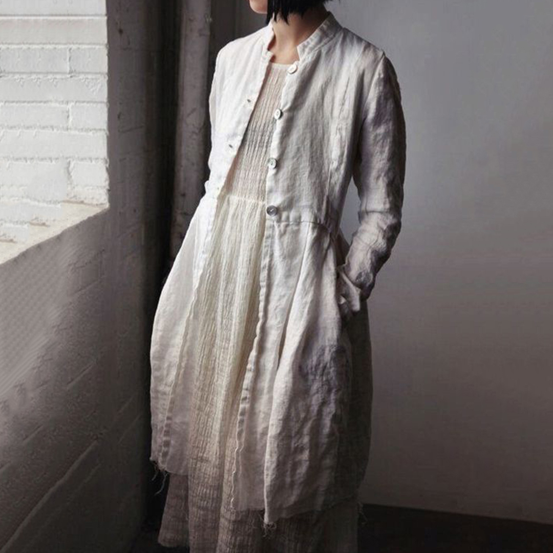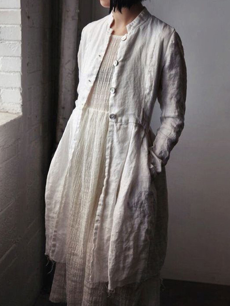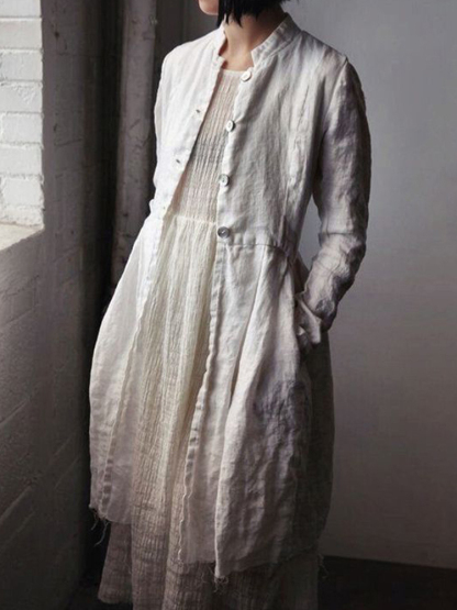 Vintage Pocket Button Linen Cotton Comfy Long Coat