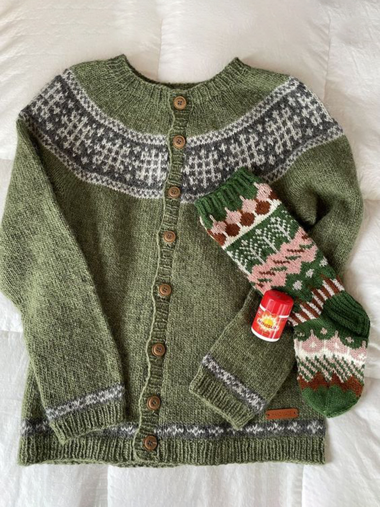 Vintage Tribal Button Down Icelandic Comfy Sweater