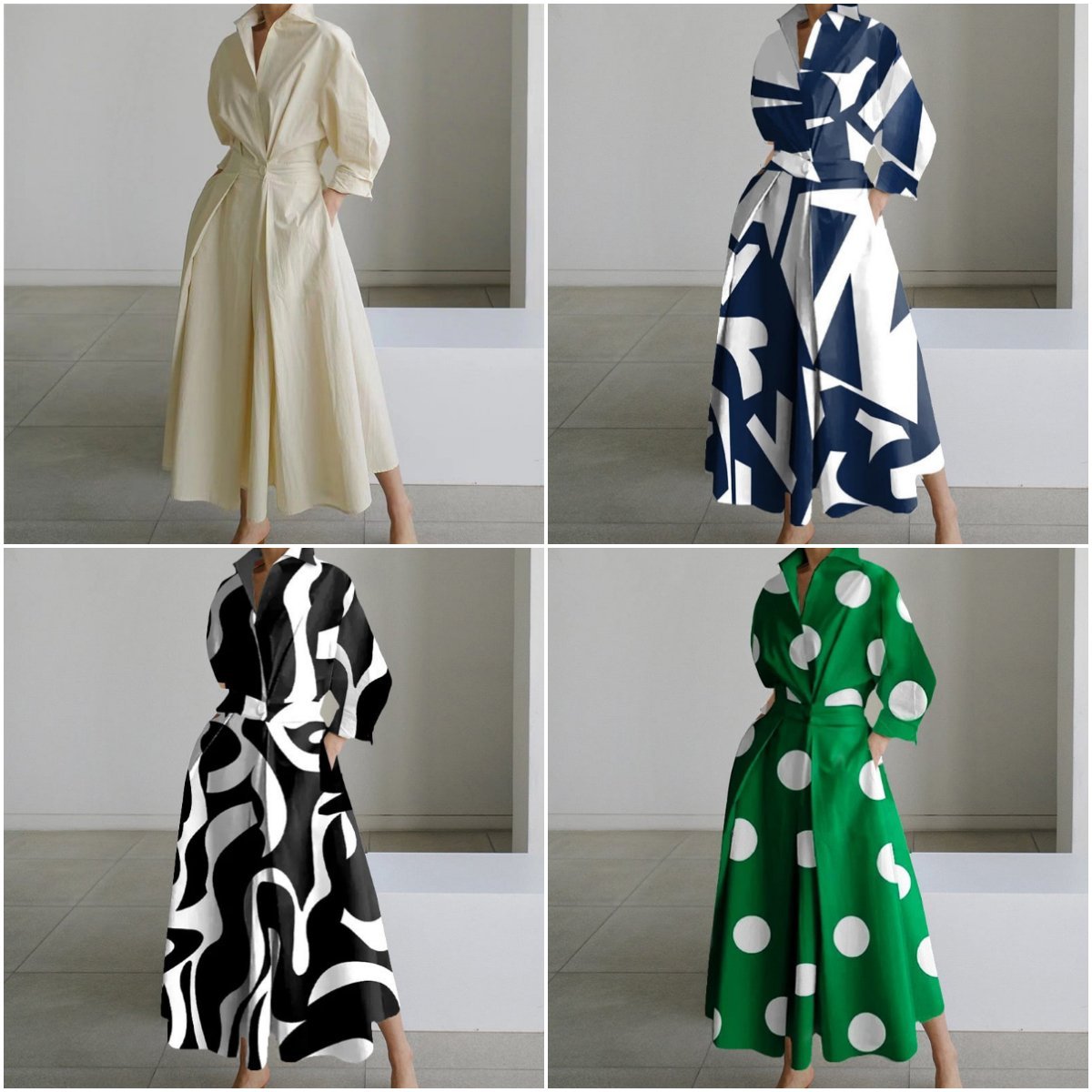 💕What should I wear tomorrow?💕Fashionable POLO collar lining nine-point sleeve loose swing dress