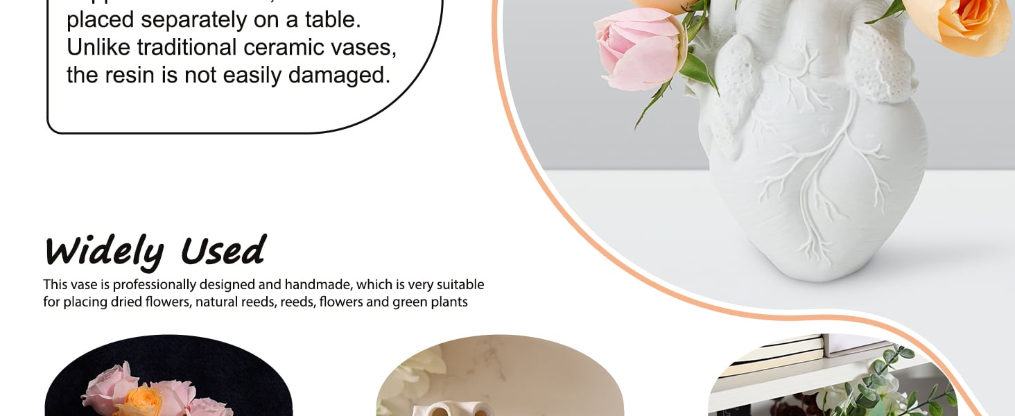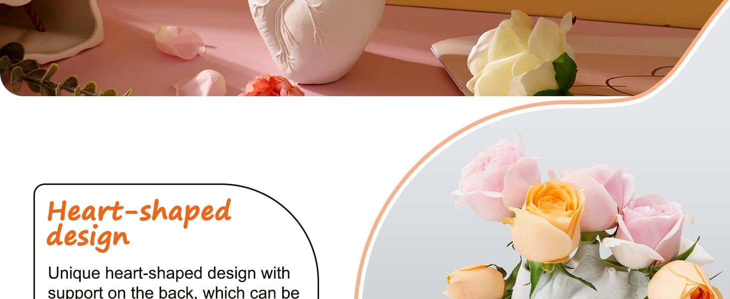 • 【Special Design】White Art Flower Vase with Anatomical Heart Shaped, It Can Perfect Match a Variety of Decor Accents. Beautiful Decoration for Kitchen, Living Room, Office, Restaurant, Dining Room Table Wedding Centerpiece.